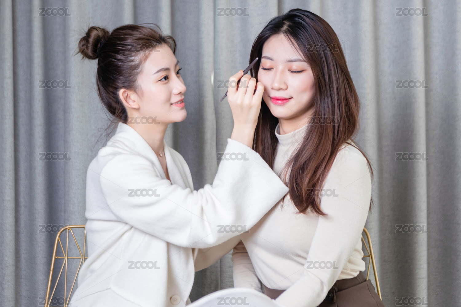 正在化妝的兩位美女閨蜜