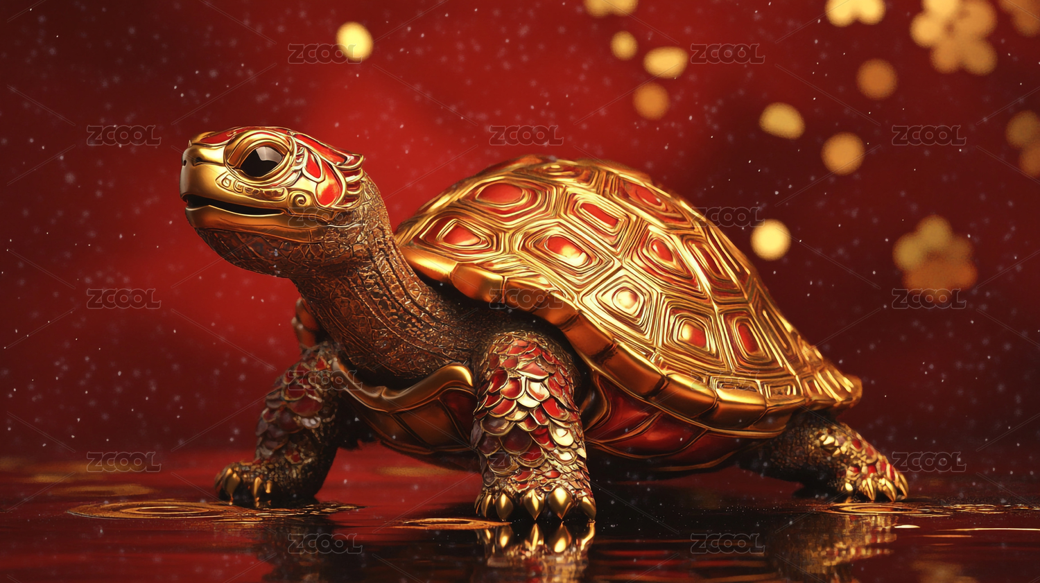 中國風(fēng)紅色新年喜慶吉祥主題金龜背景插圖
