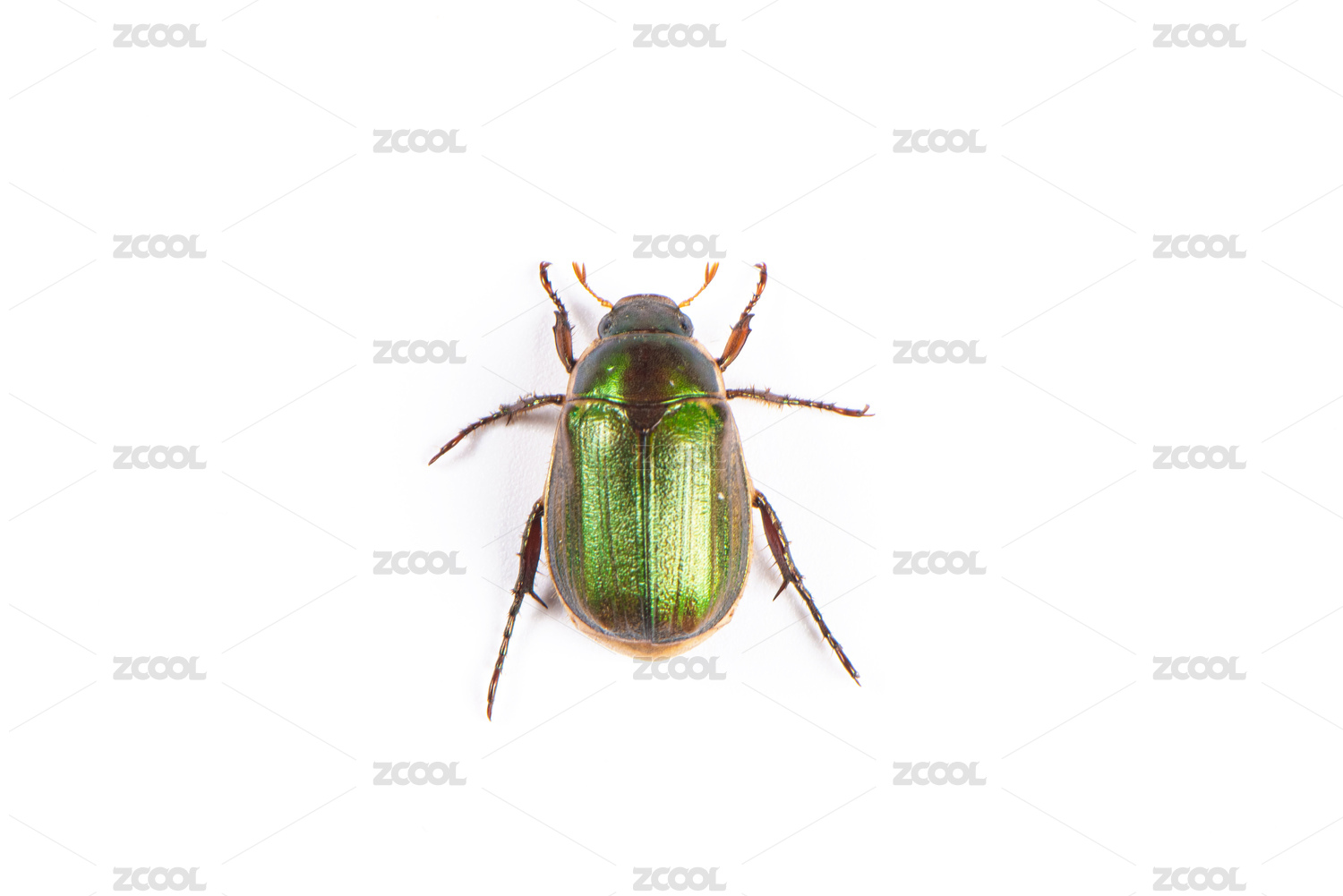 白底上的一只銅綠麗金龜