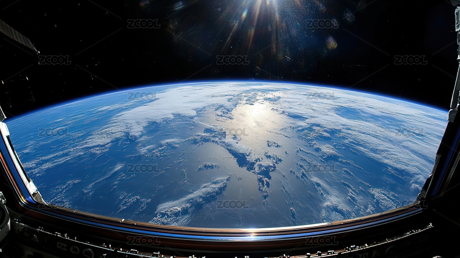 國(guó)際空間站窗口外的太空景象星空背景圖
