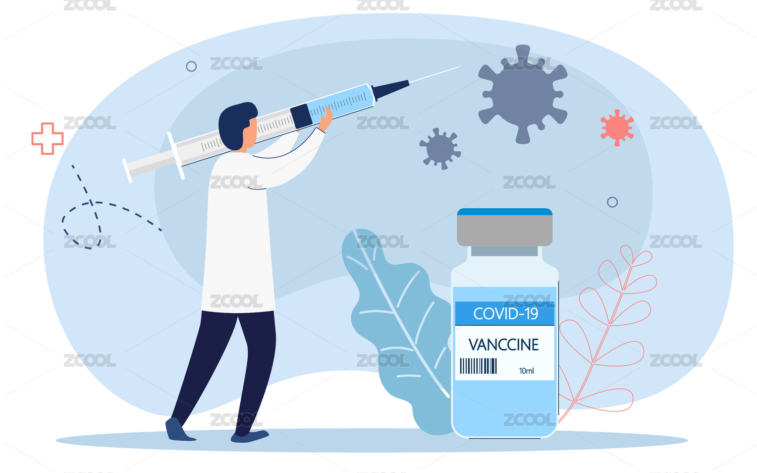 醫(yī)生拿著注射器準(zhǔn)備接種疫苗或消滅病毒