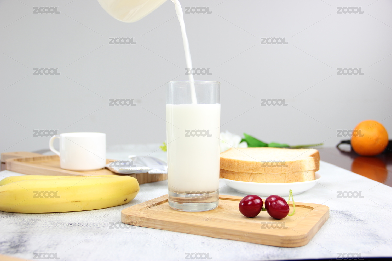 倒牛奶早餐早上好圖片