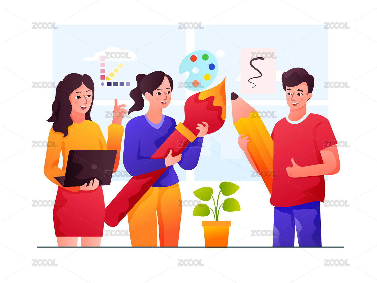 卡通手繪教育用具畫筆畫布裝飾插畫