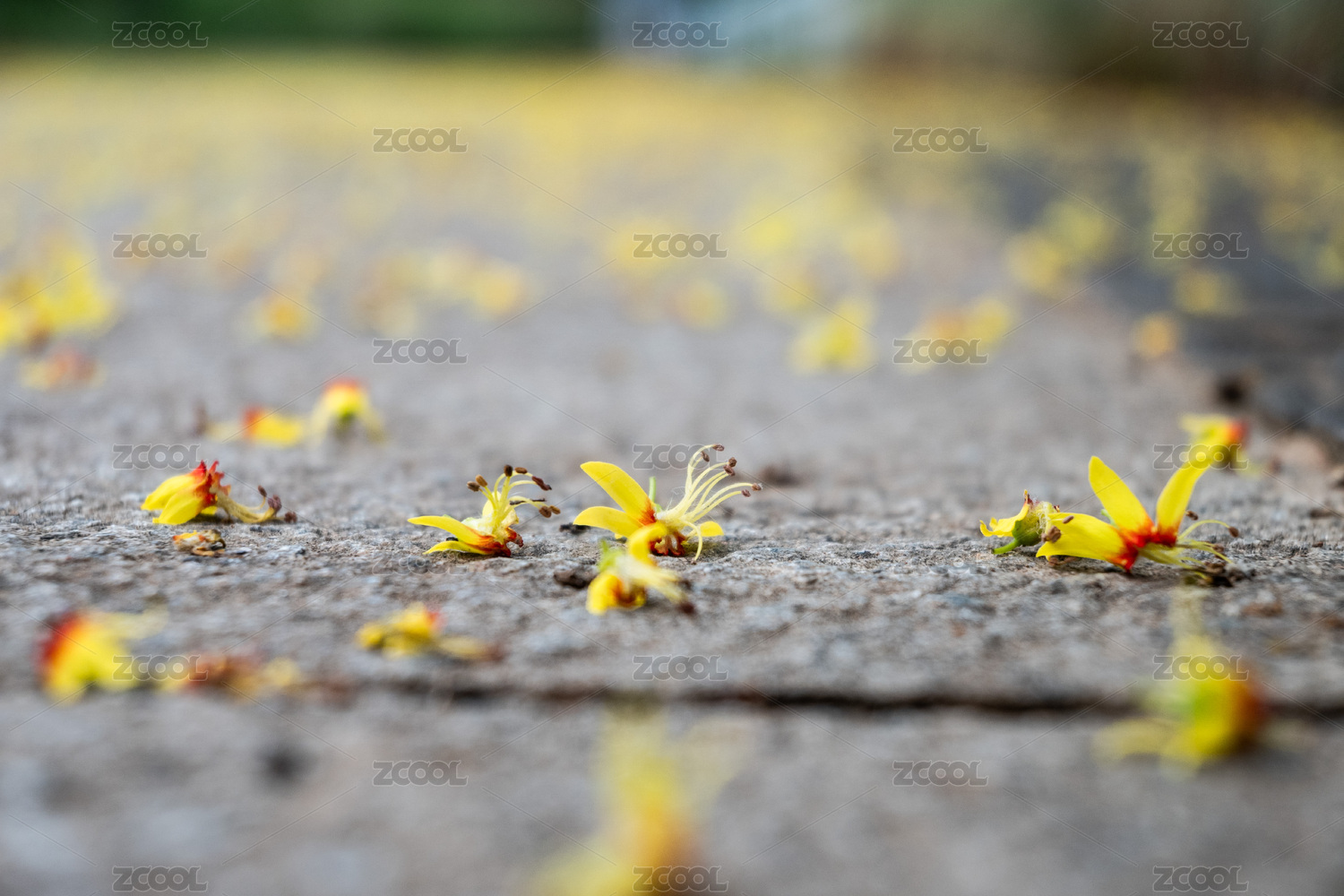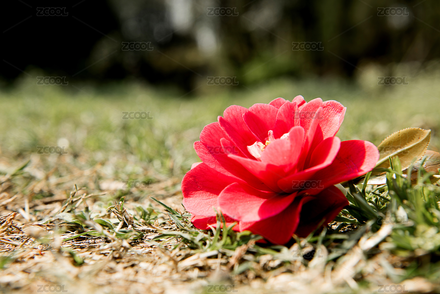 潔白的大雪映襯著的玫紅色鮮艷落花花瓣