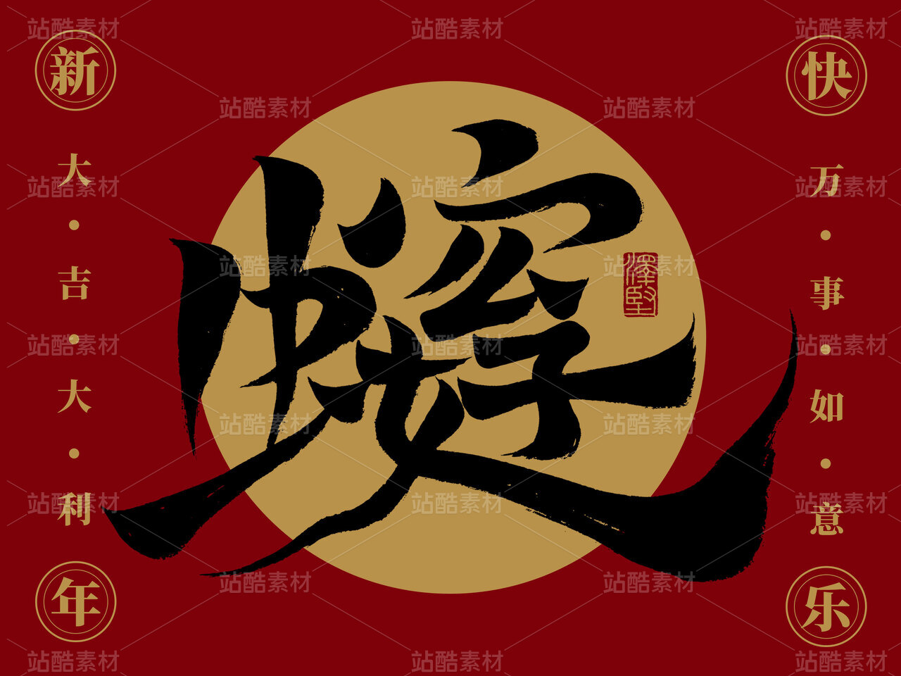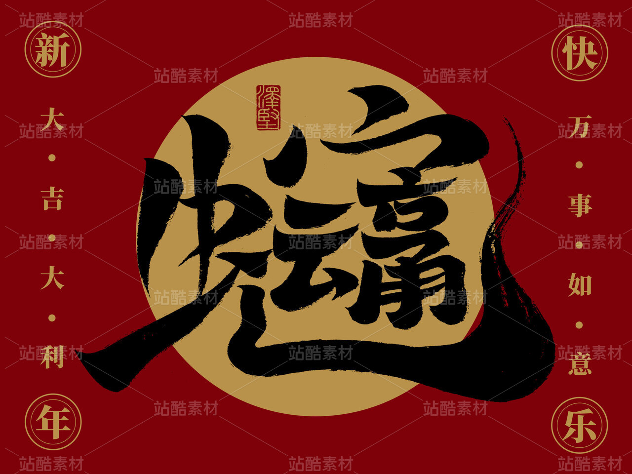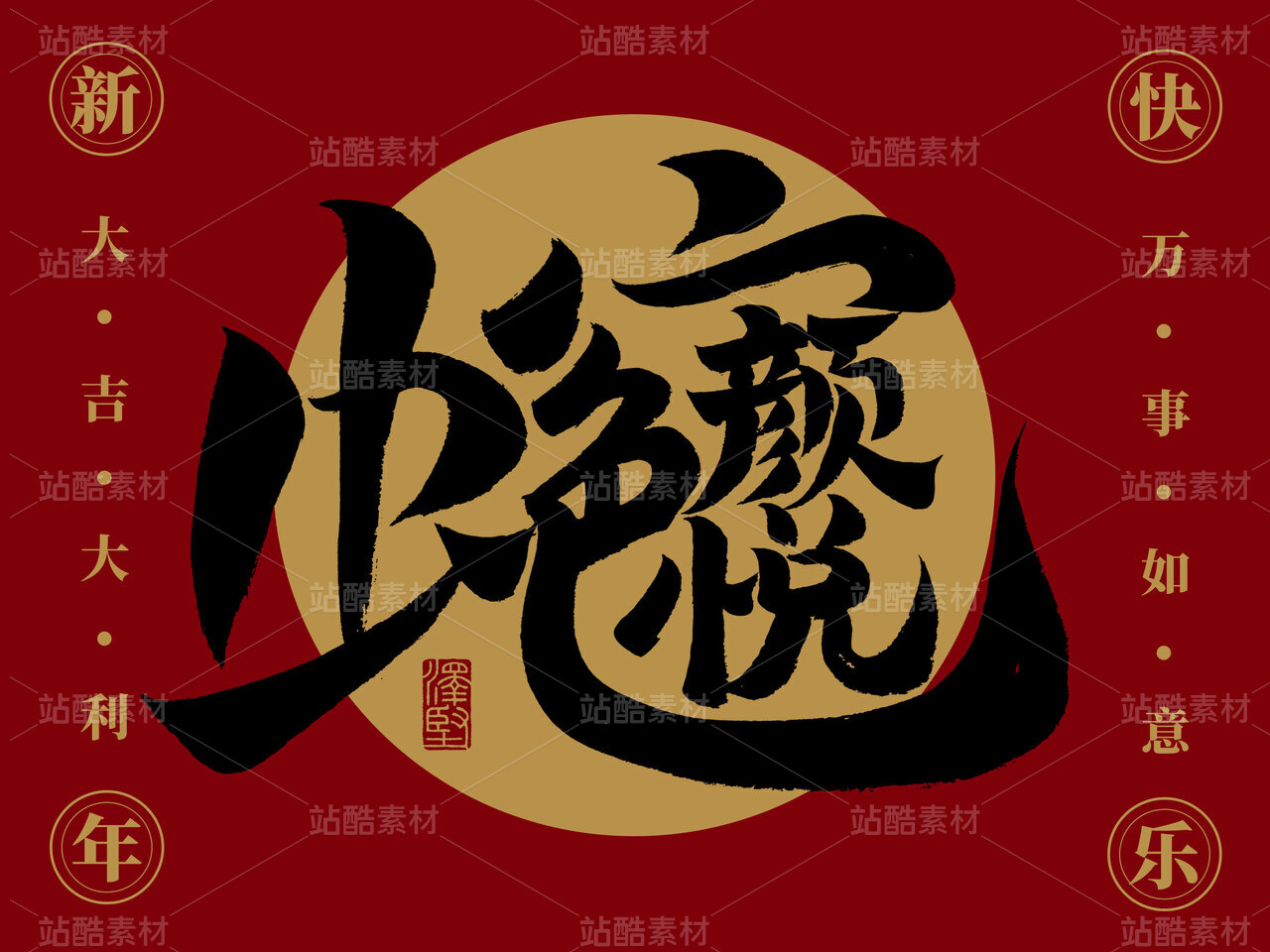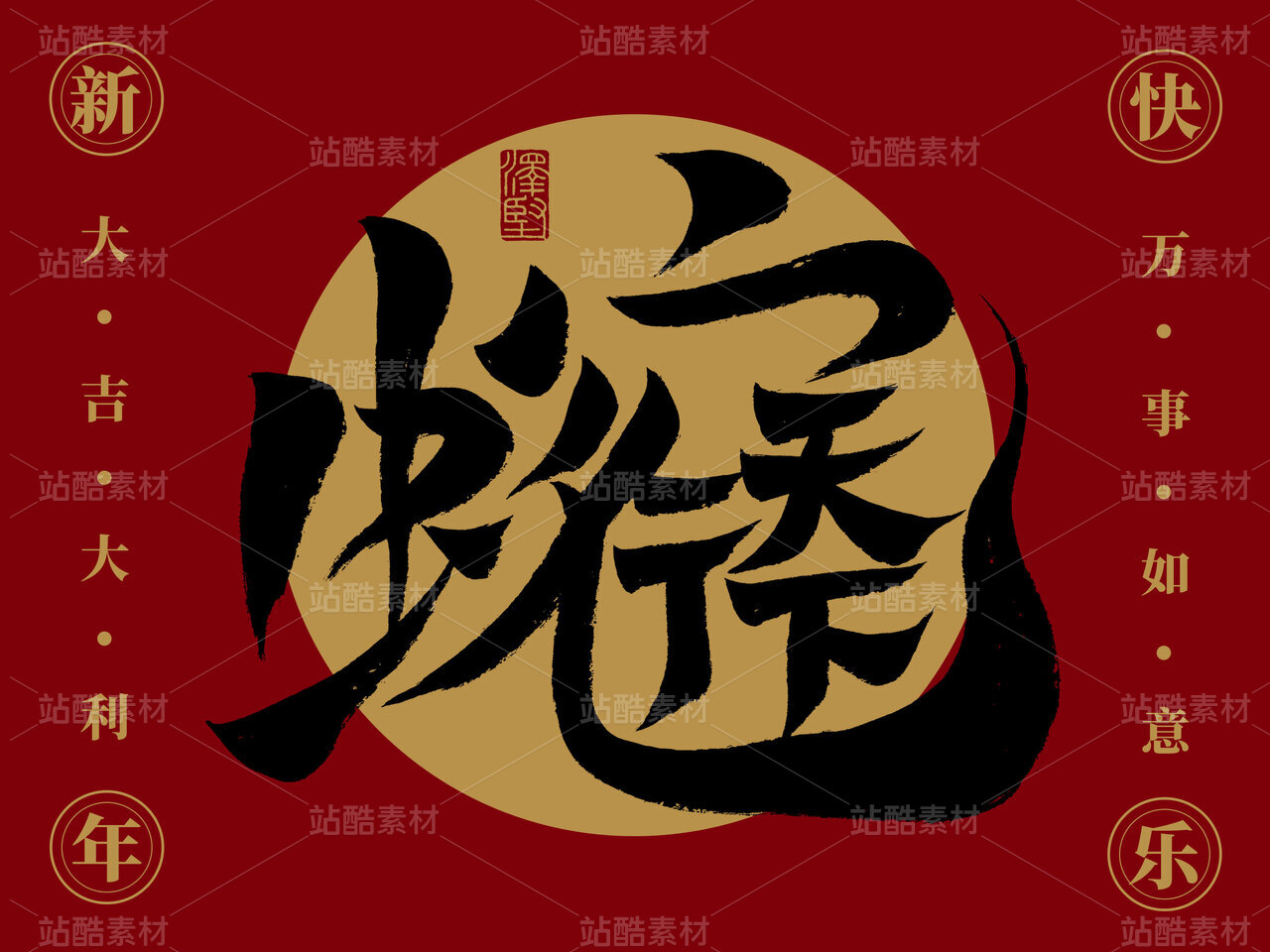 蛇年祝福/蛇年大吉/新年祝福/合體字/手寫祝福/毛筆字