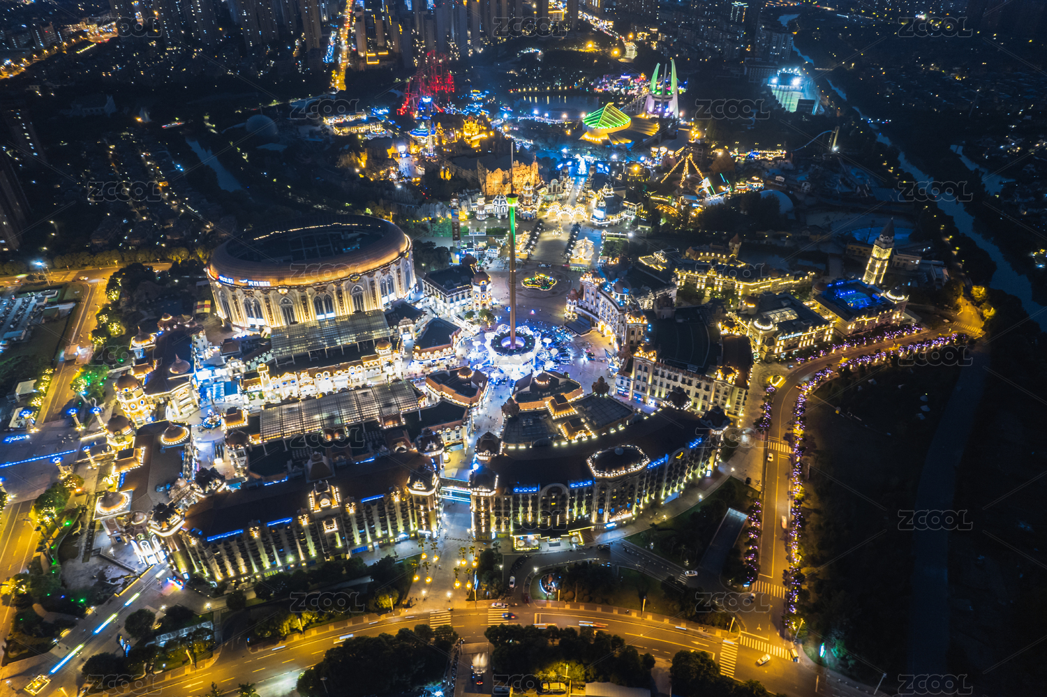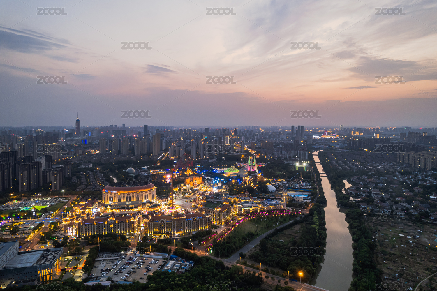 常州市迪諾水鎮(zhèn)、中華恐龍園及周邊建筑航拍