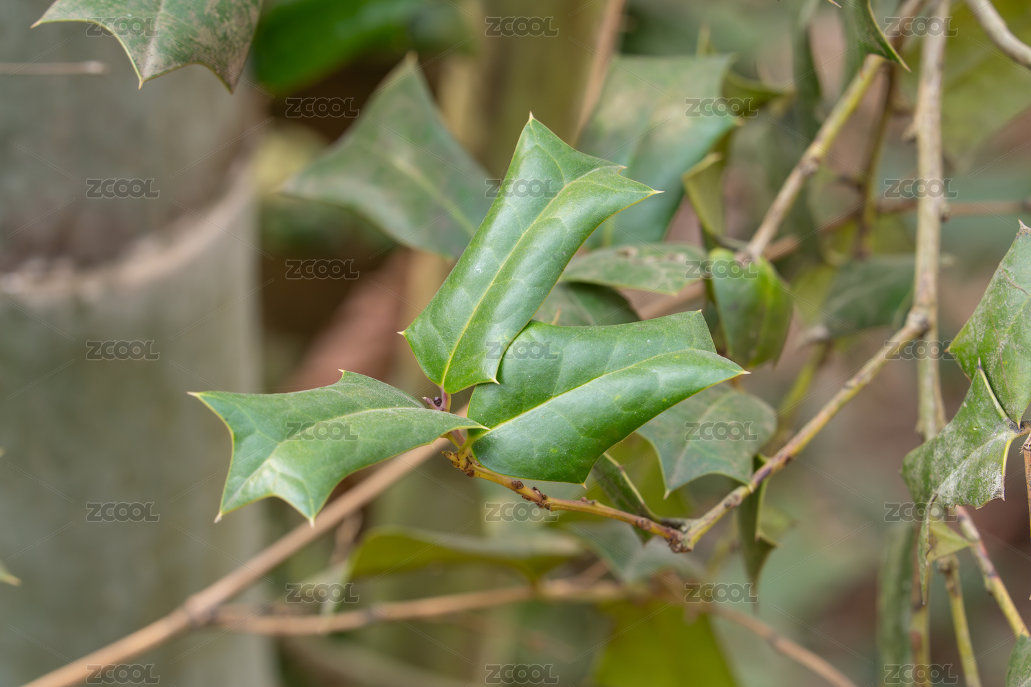 上海秋霞圃古建筑屋檐旁的無(wú)刺冬青