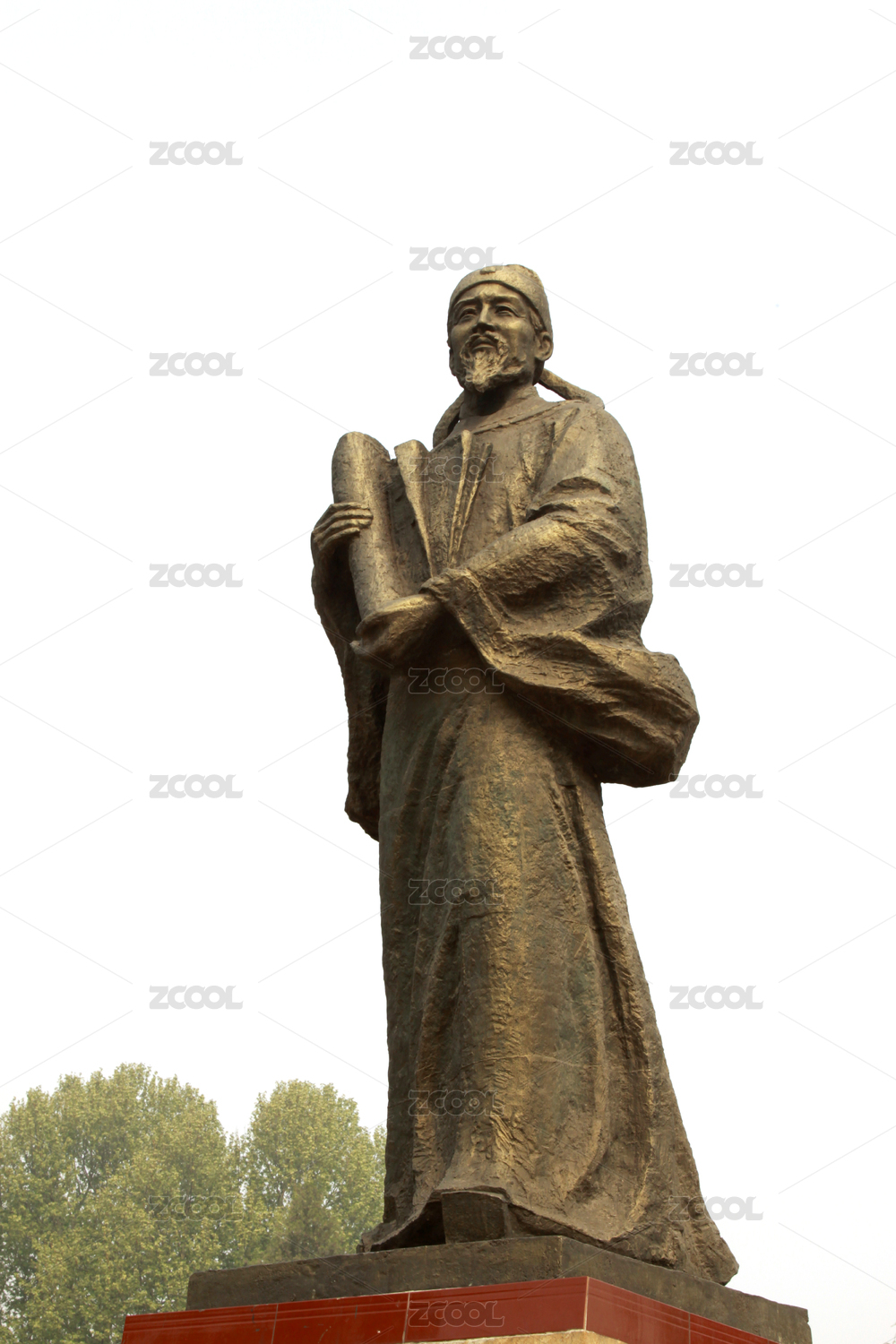 青銅人物雕像手持卷軸