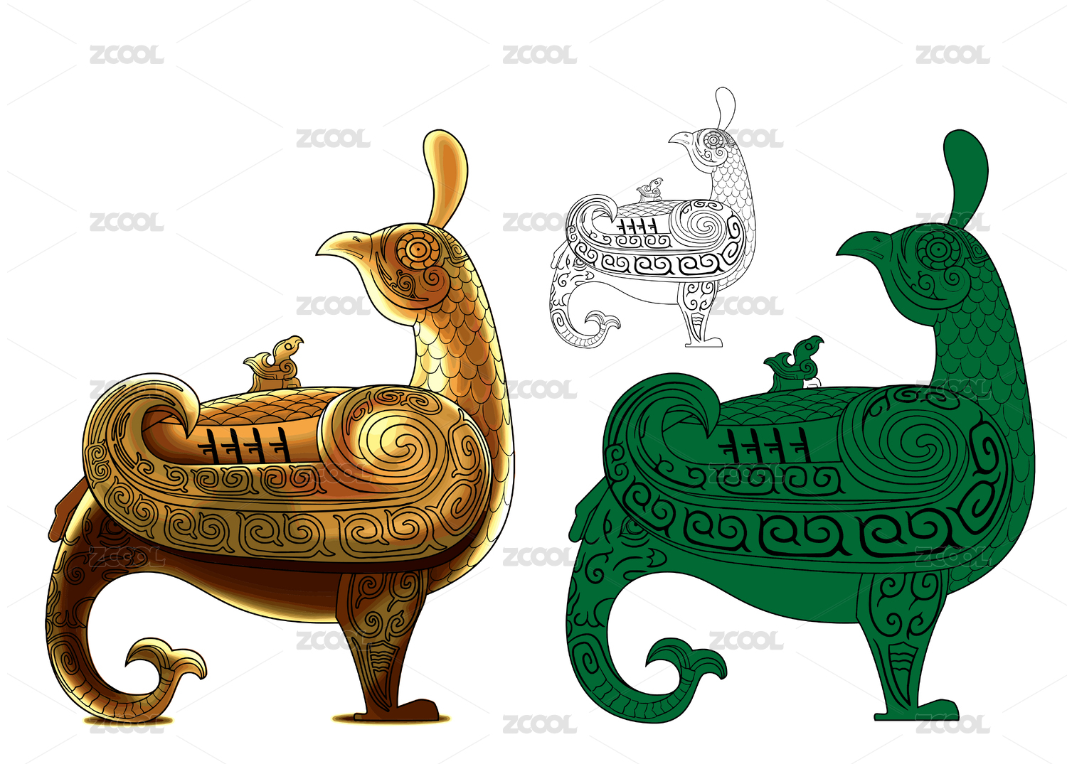 博物館鳥(niǎo)尊造型矢量線稿
