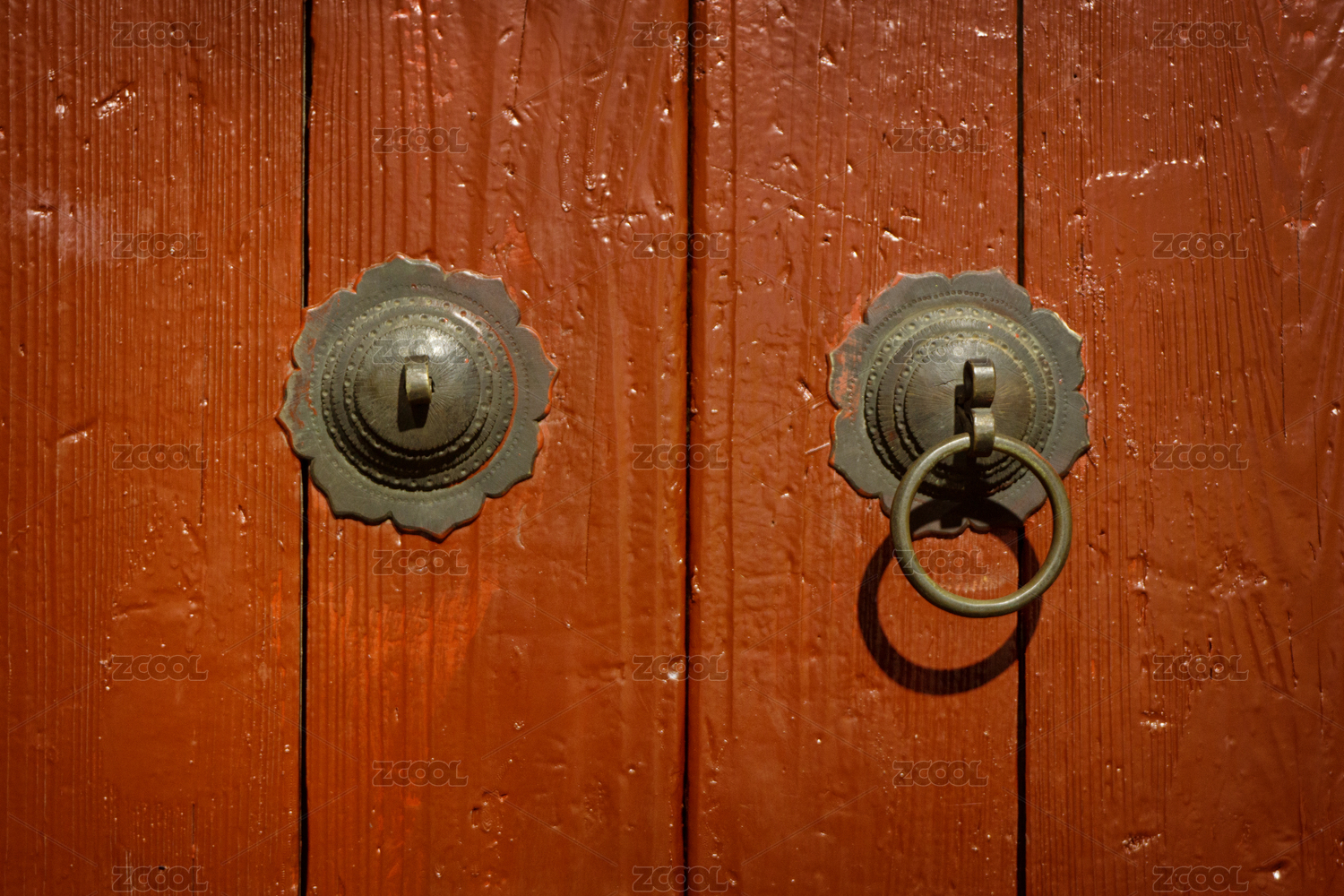 紅色墻上的青銅門(mén)環(huán)