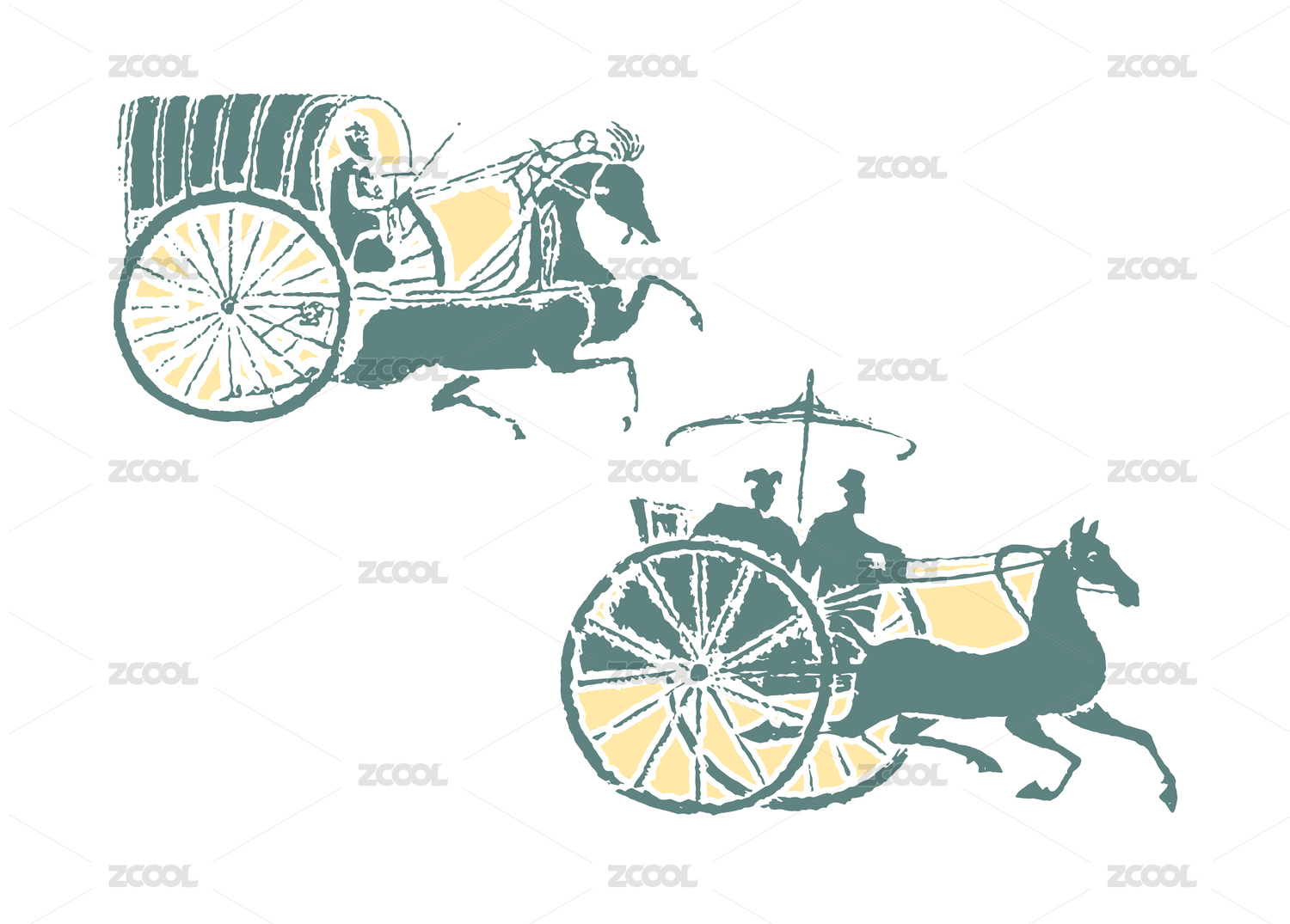修復(fù)重繪古代青銅人馬駕車兵馬俑矢量圖