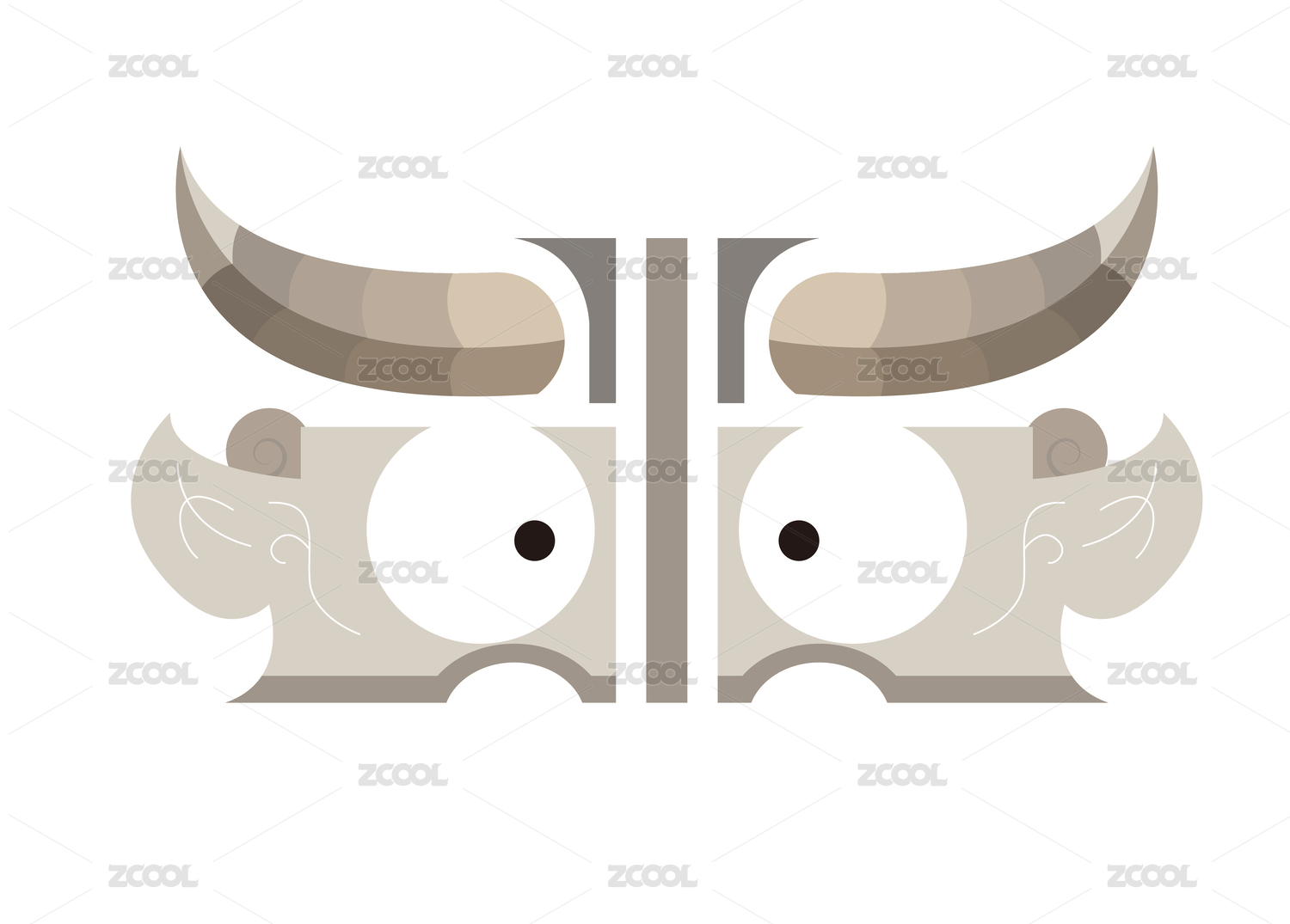 青銅牛方尊圖形可愛(ài)牛矢量元素