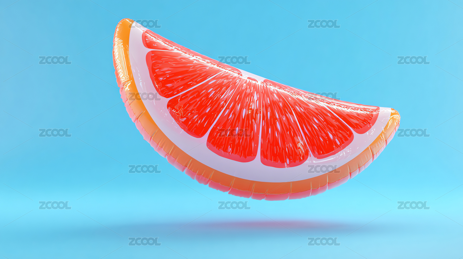 橙子造型充氣浮床懸浮于藍(lán)天背景中