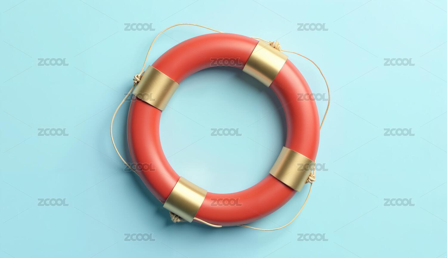 紅色救生圈置于淺藍(lán)背景