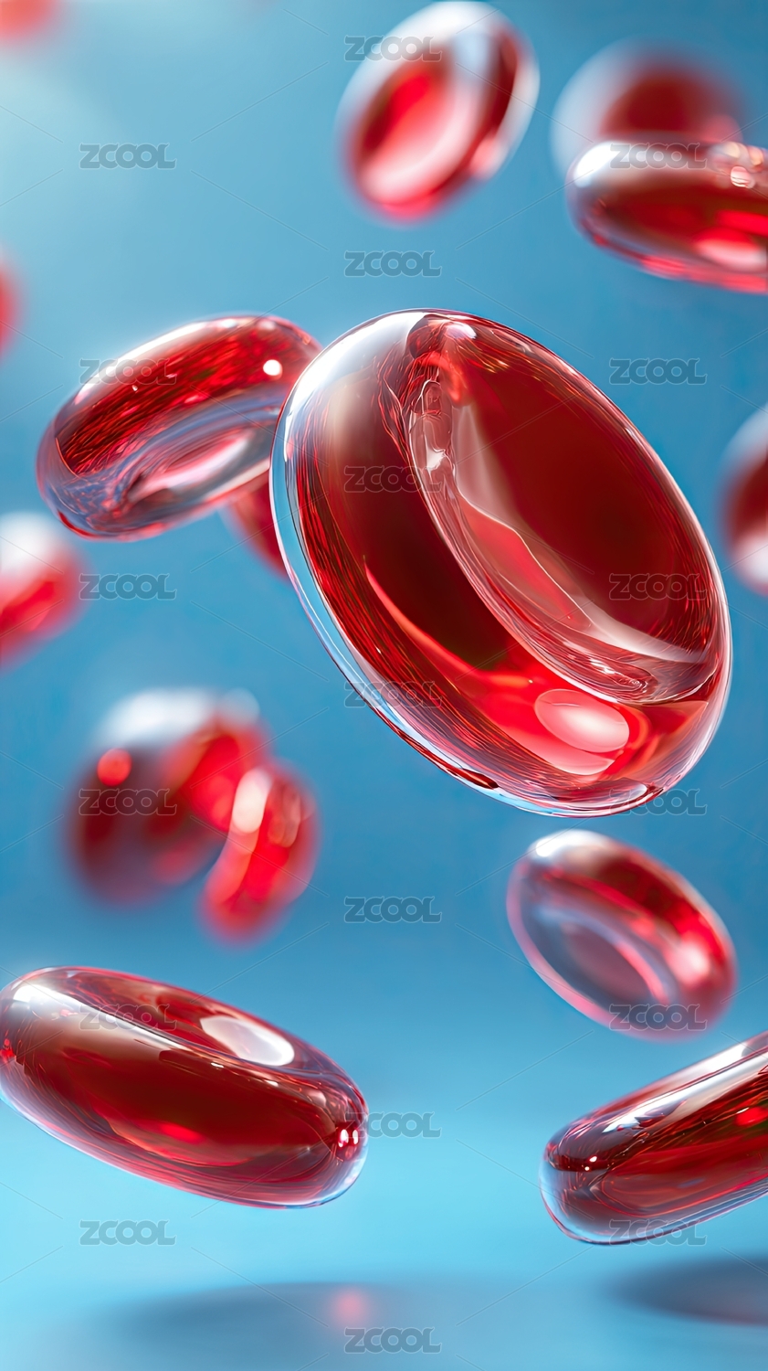 紅色細(xì)胞懸浮藍(lán)色背景