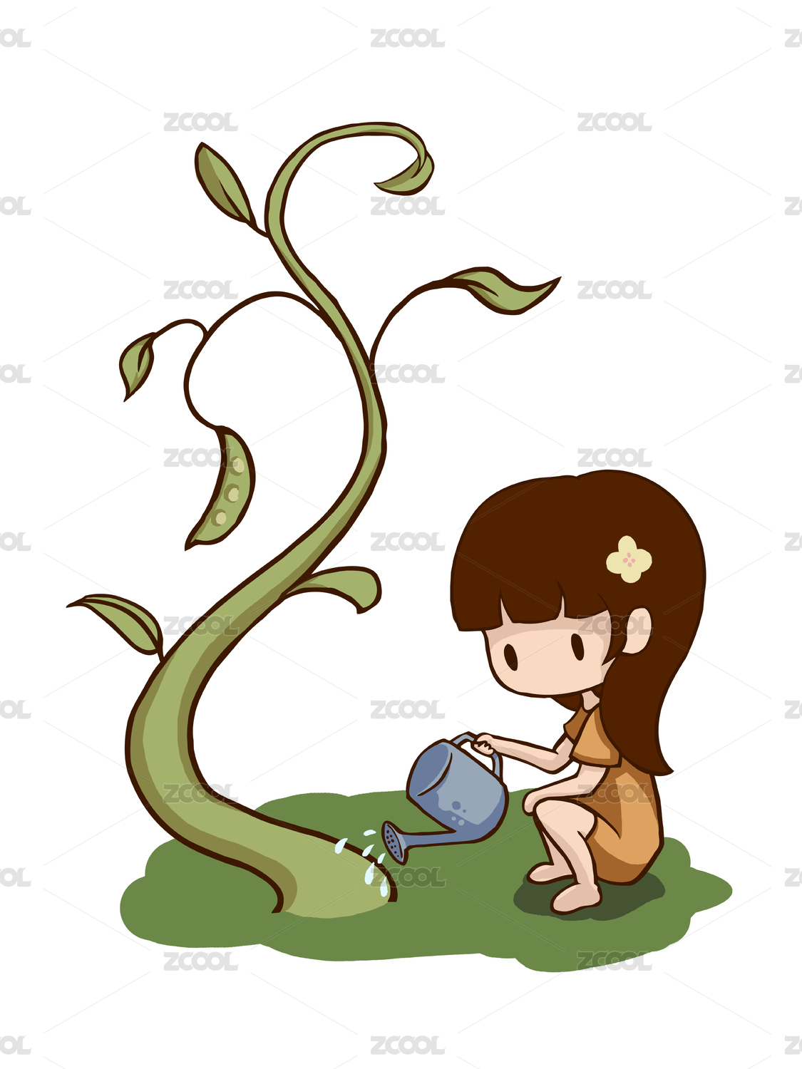 描邊風(fēng)格的金錢(qián)花灌溉