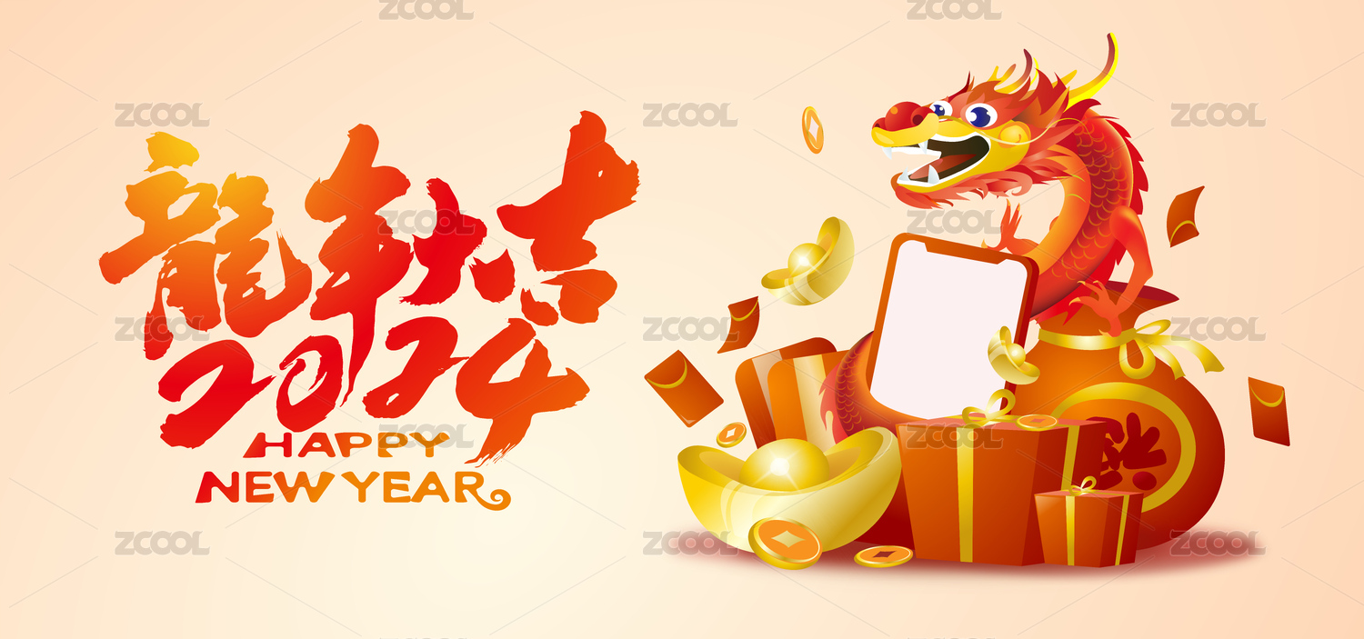 傳統(tǒng)春節(jié)中國龍年理財小龍來拜年手機送福氣