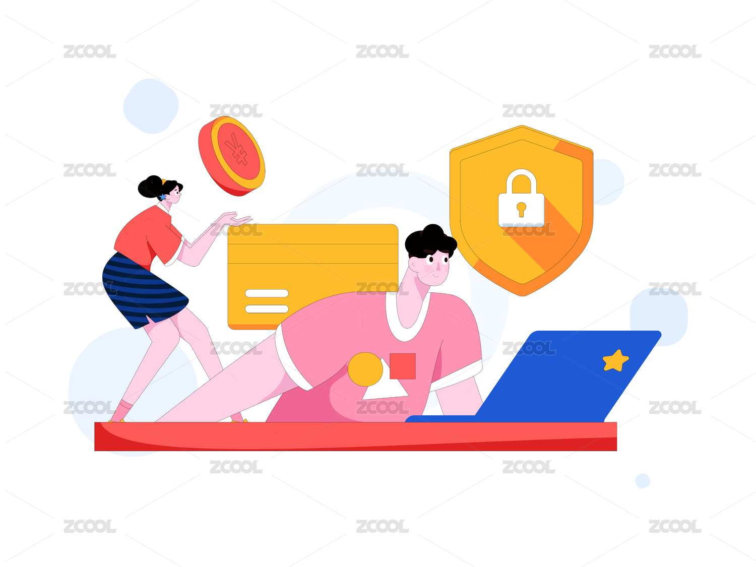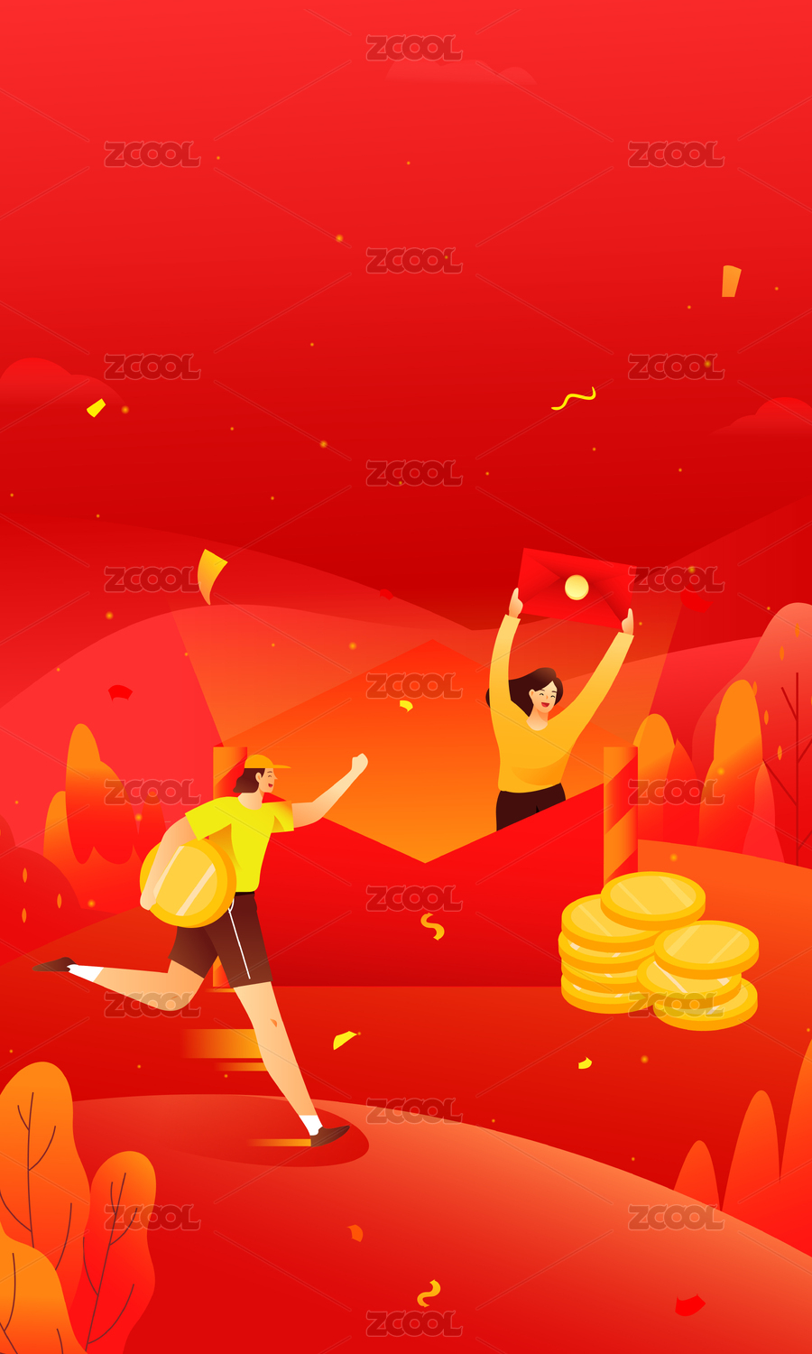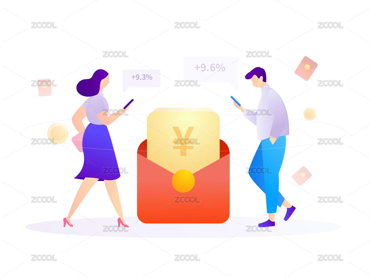 理財理財增值男女搶紅包優(yōu)惠券矢量扁平人物插畫