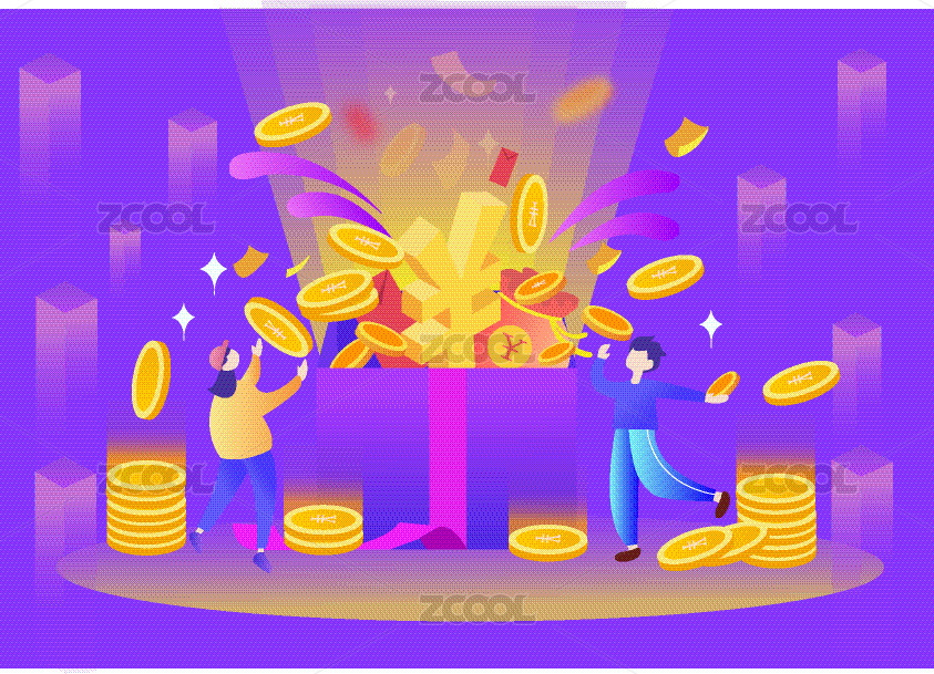 金融理財優(yōu)惠券插畫財富抽獎禮盒活動海報