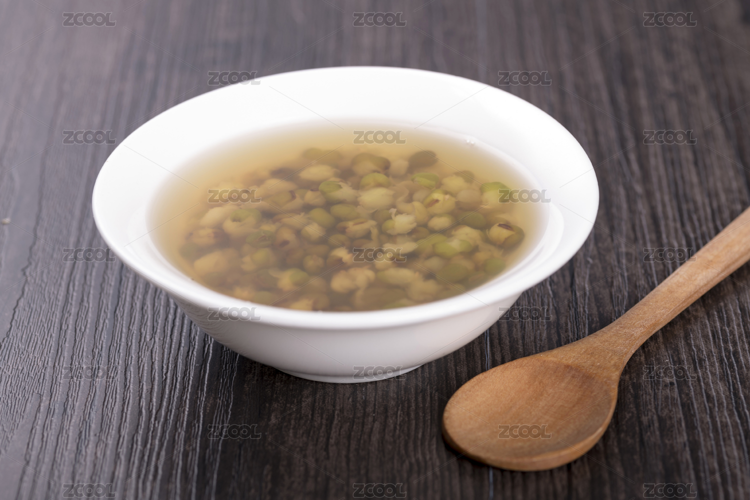 白色餐布上放著一碗清熱解毒的綠豆湯