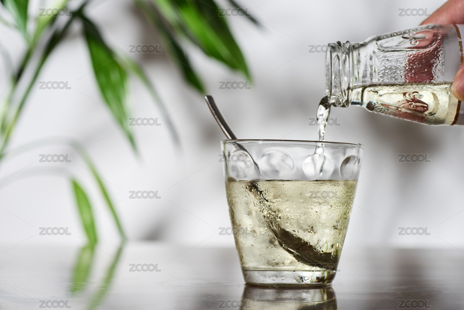 錘紋透明玻璃杯里的金銀花露