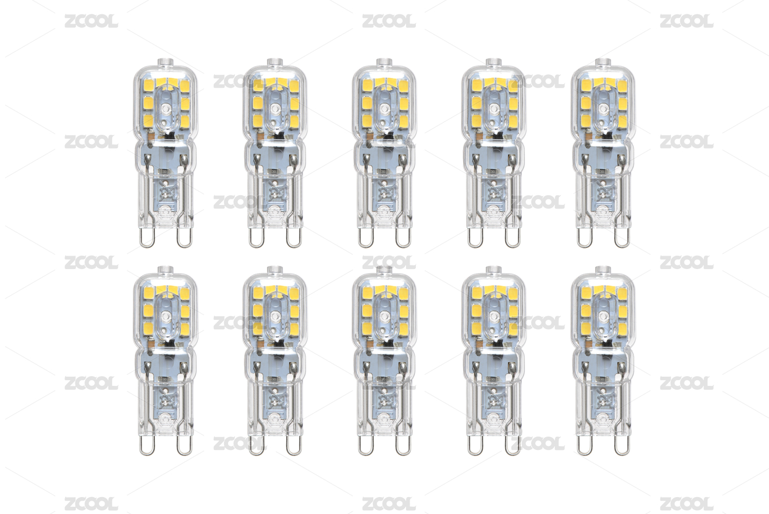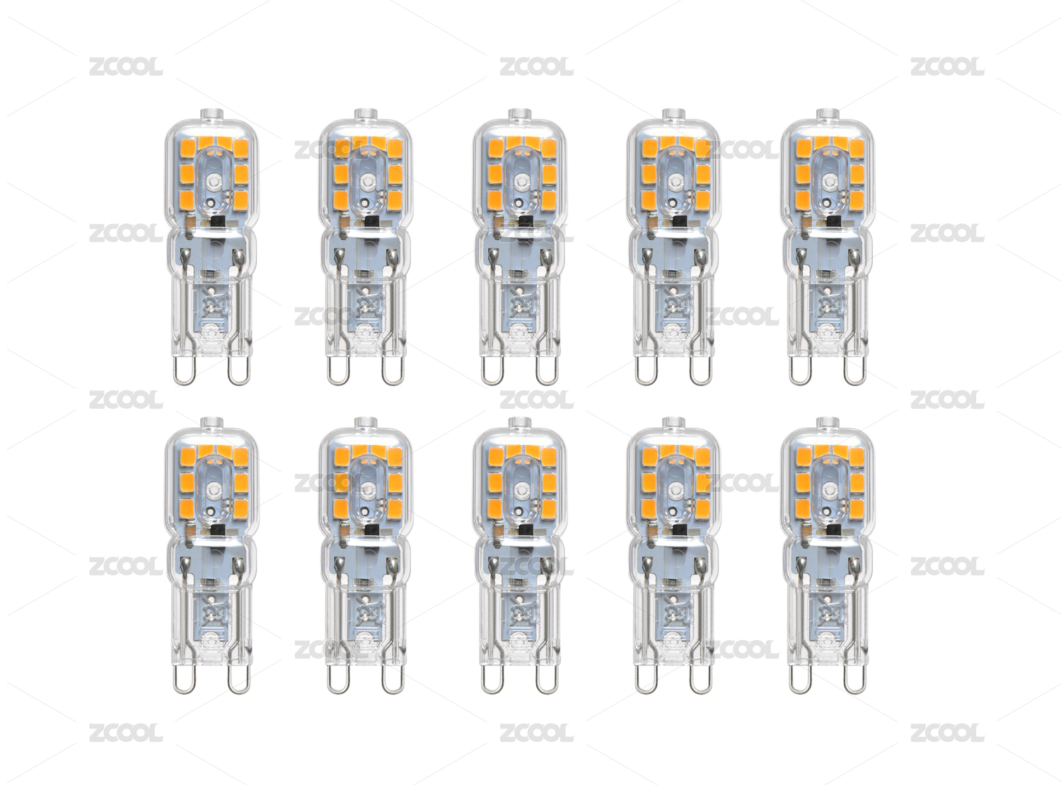 一組帶有PC透明罩的G9插腳LED燈泡