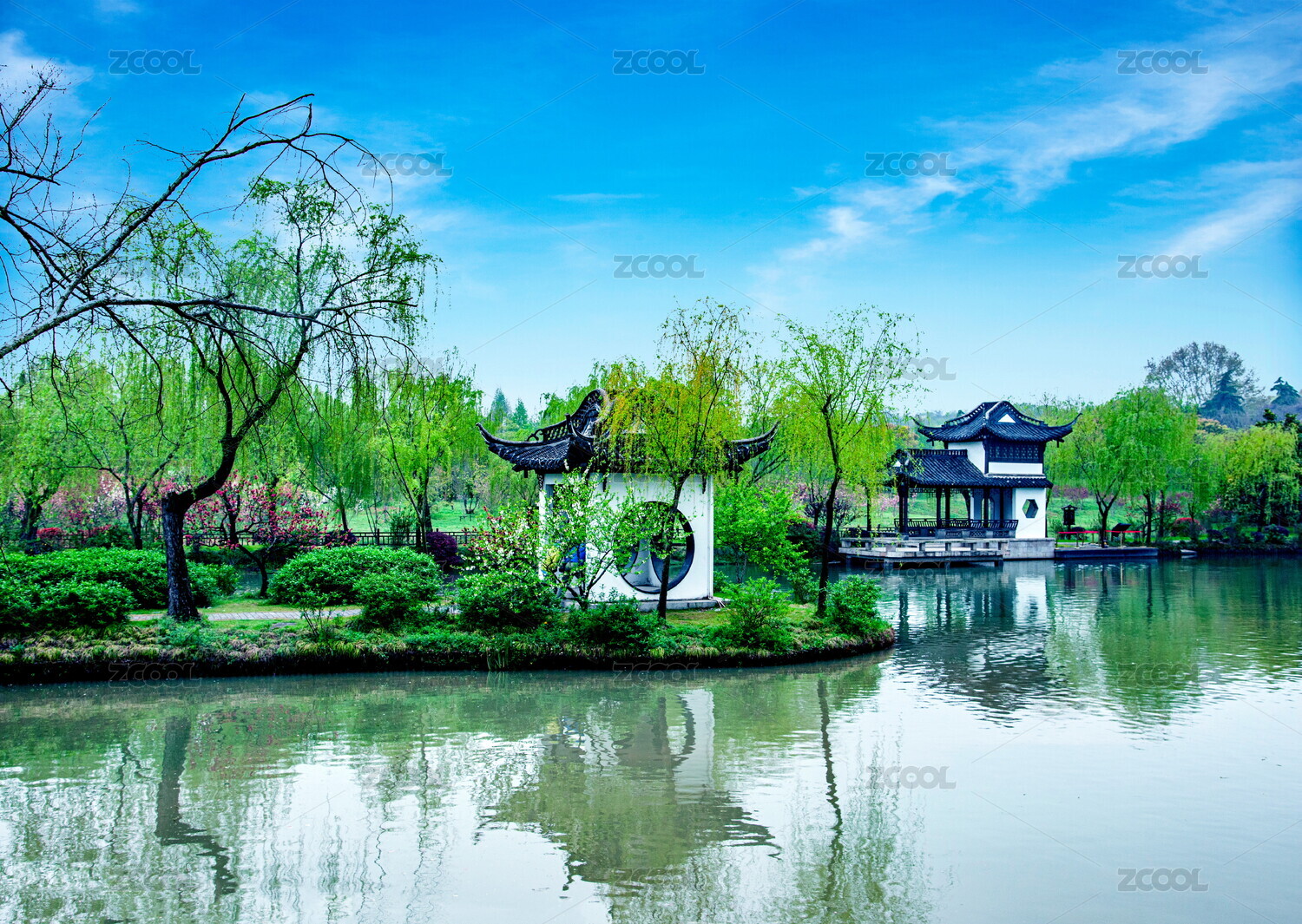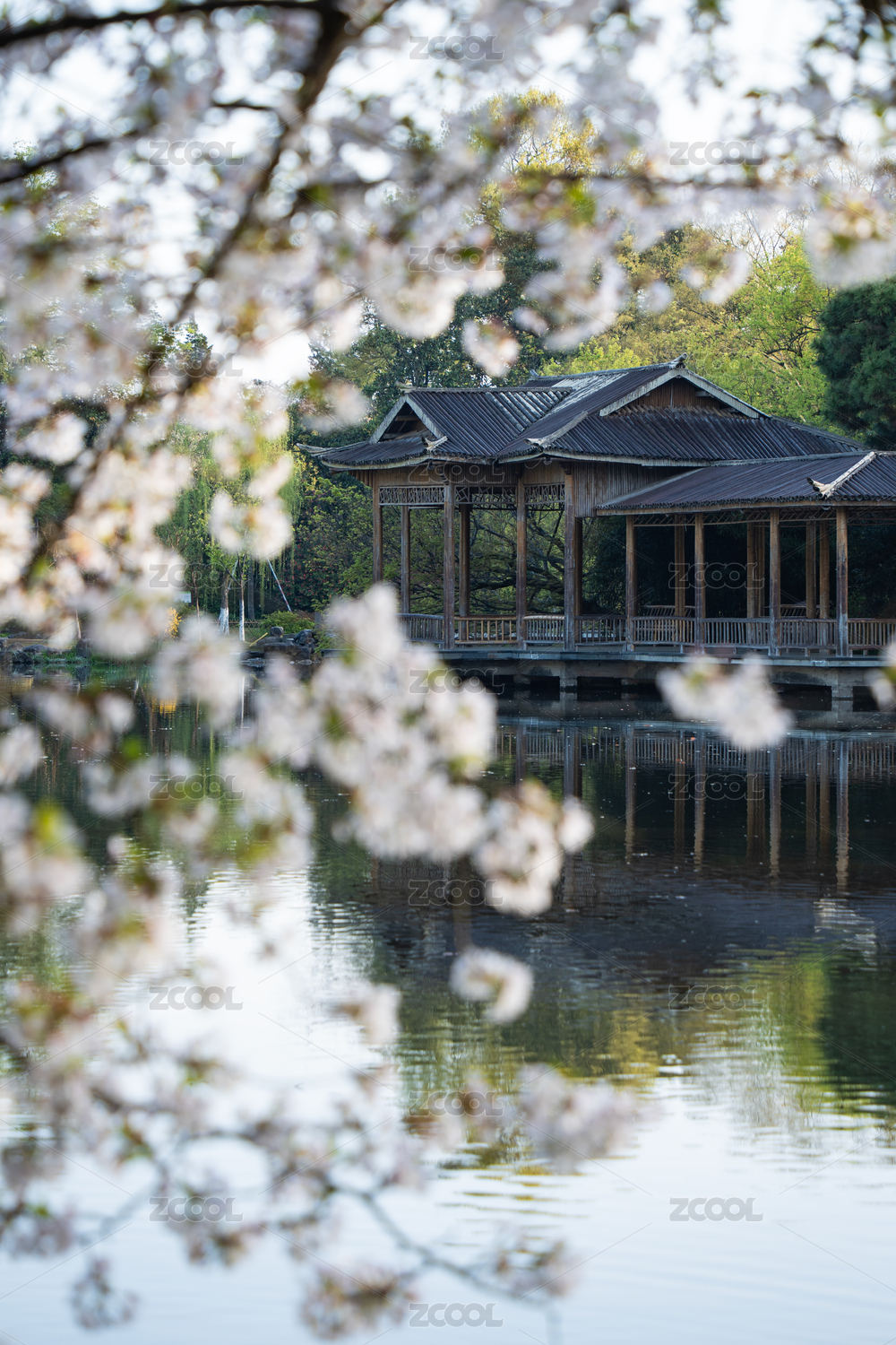杭州西湖花港觀魚水榭櫻花
