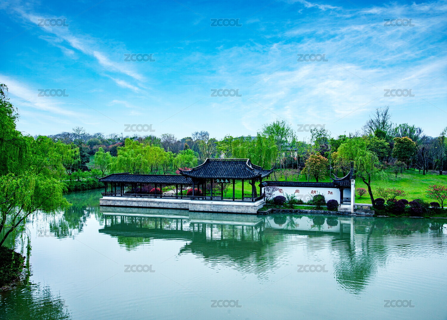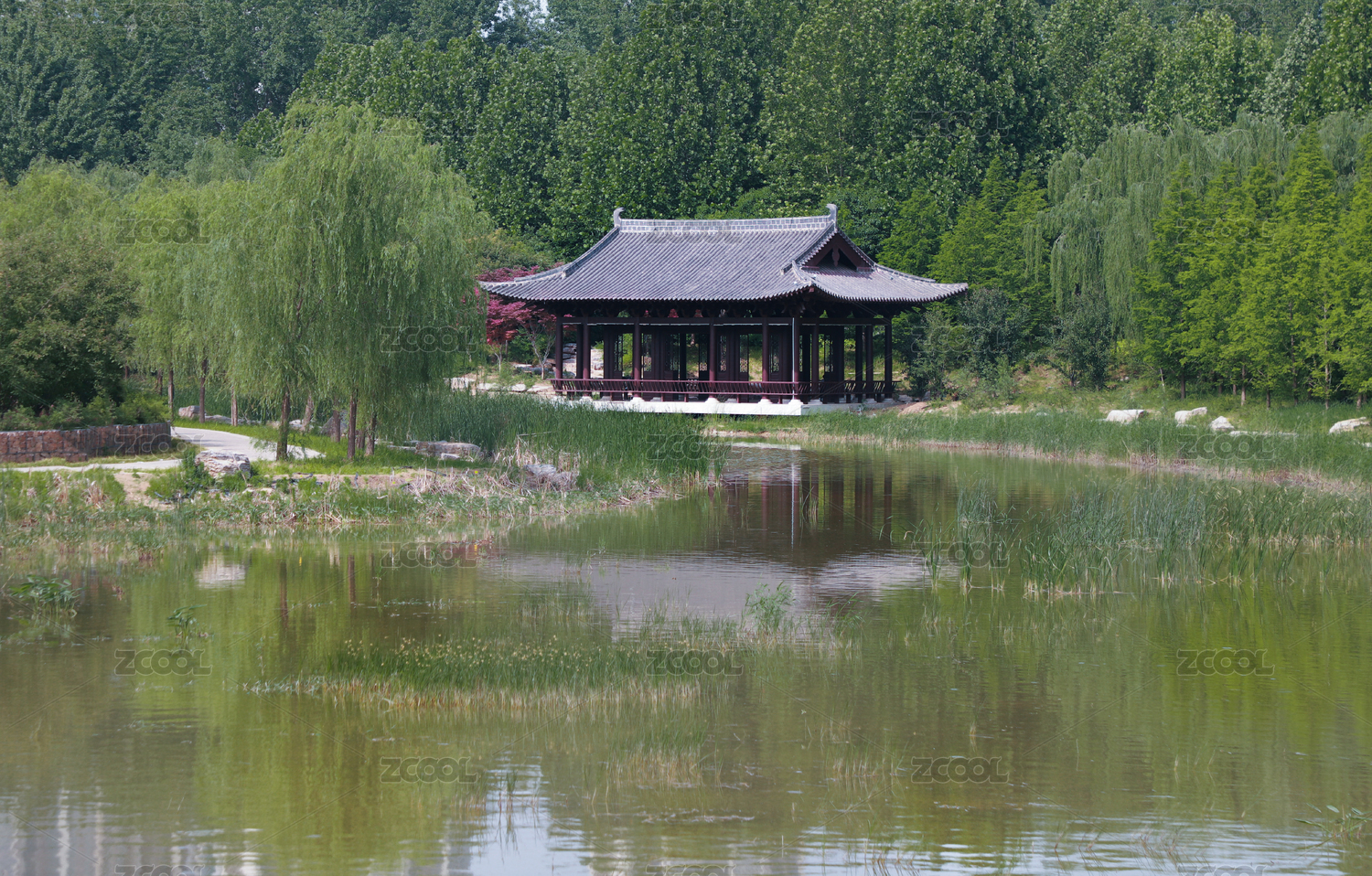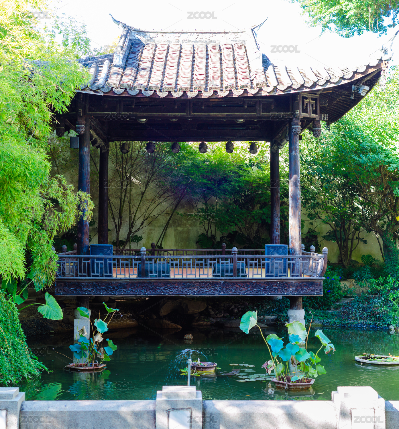 水榭荷葉園林景色