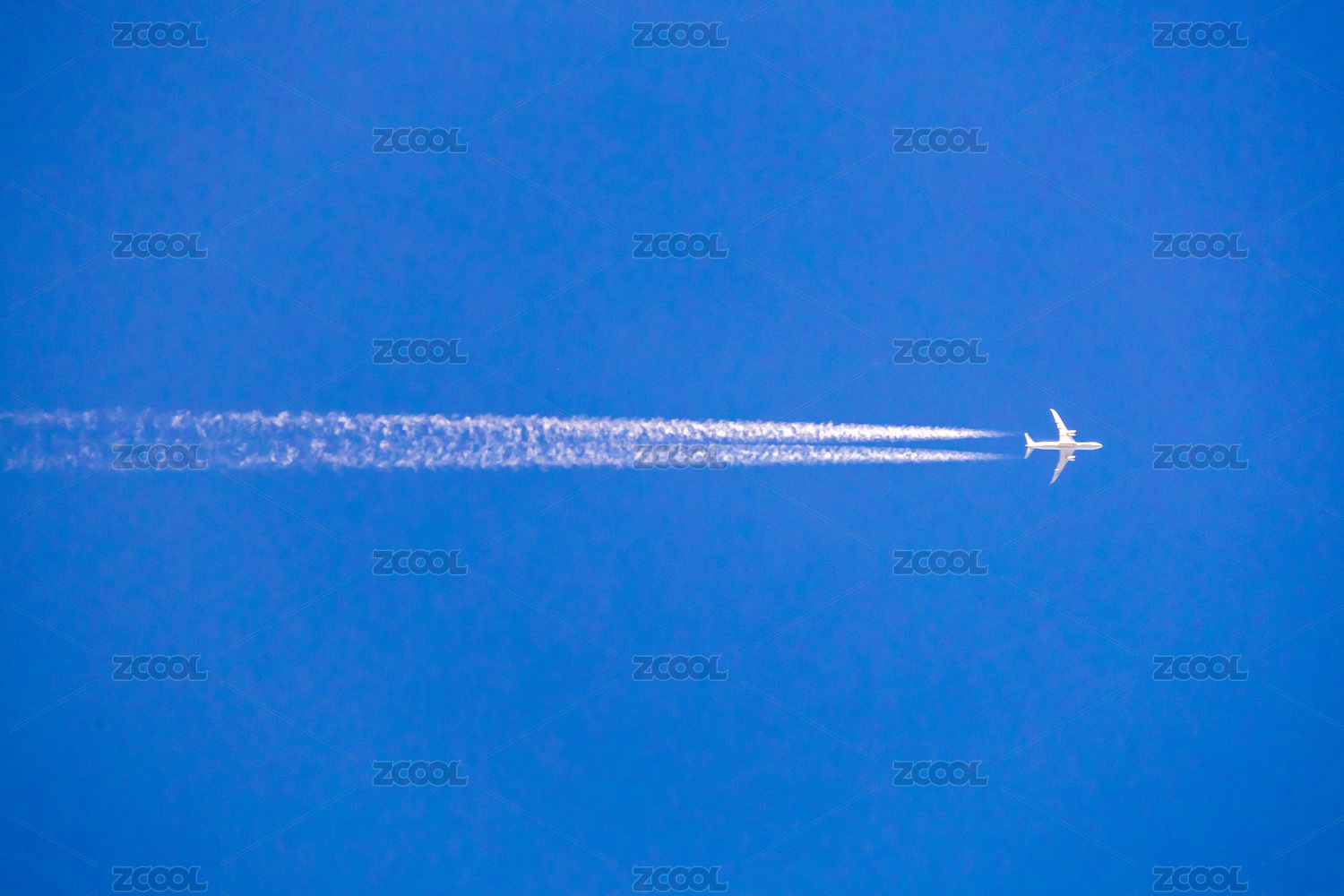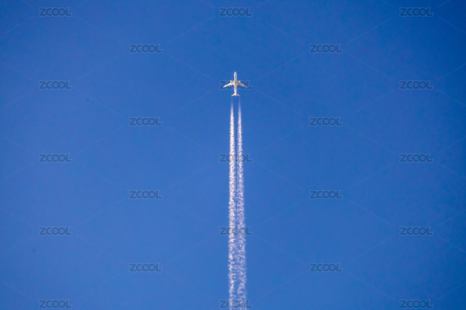 仰拍天空中的飛機拉線飛機排放燃料