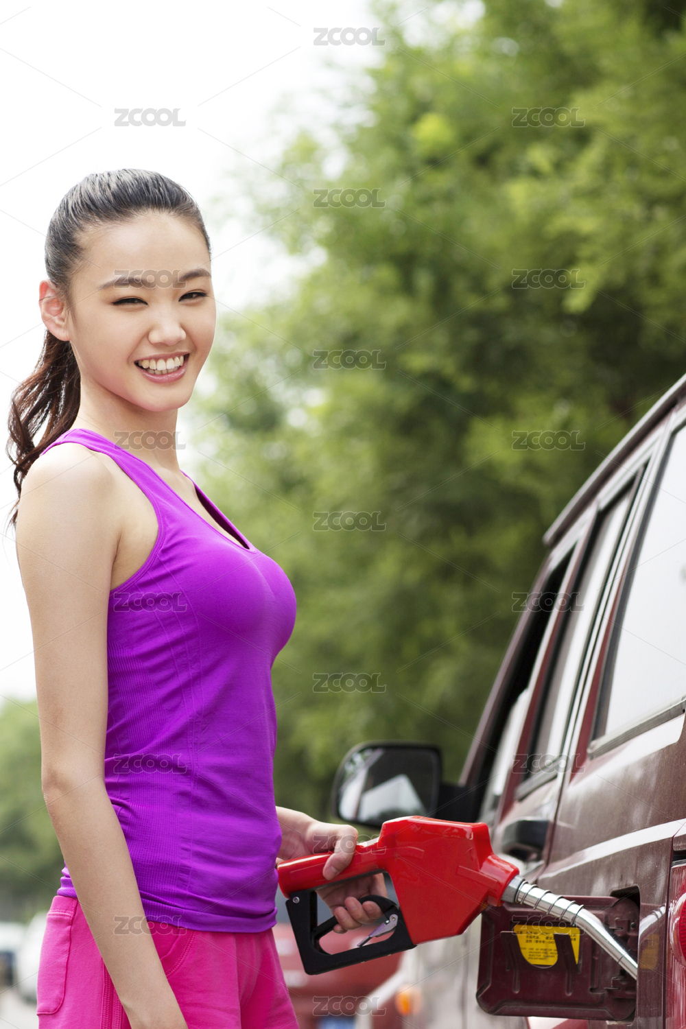 年輕女性燃料汽車