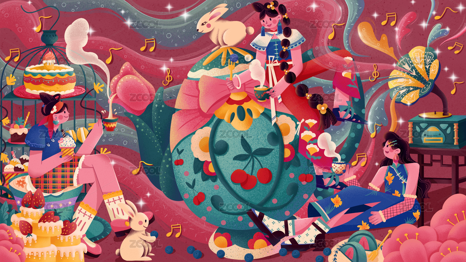新中式國(guó)潮小姐妹下午茶甜品時(shí)光