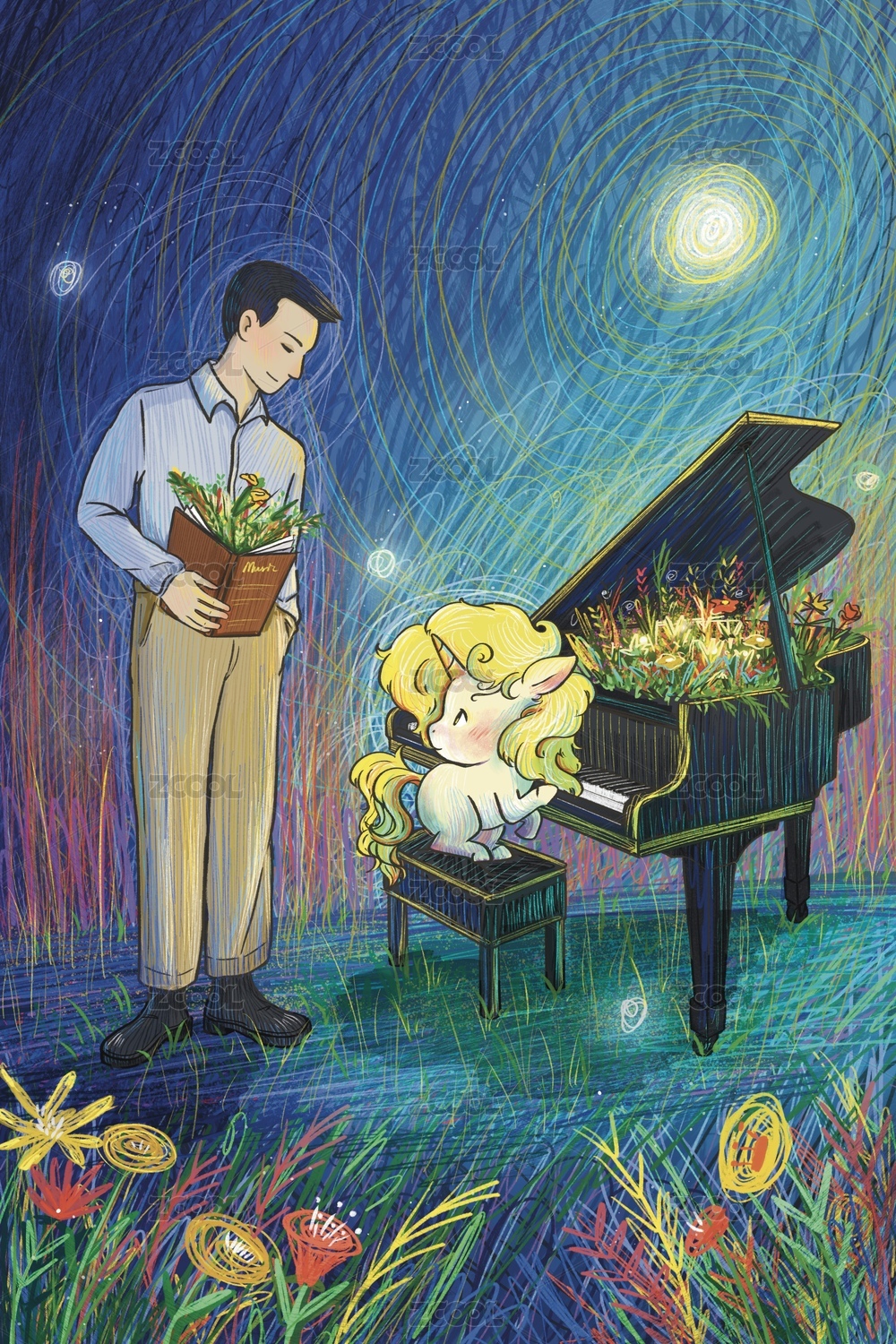 線條風(fēng)老師在教小獨(dú)角獸彈鋼琴
