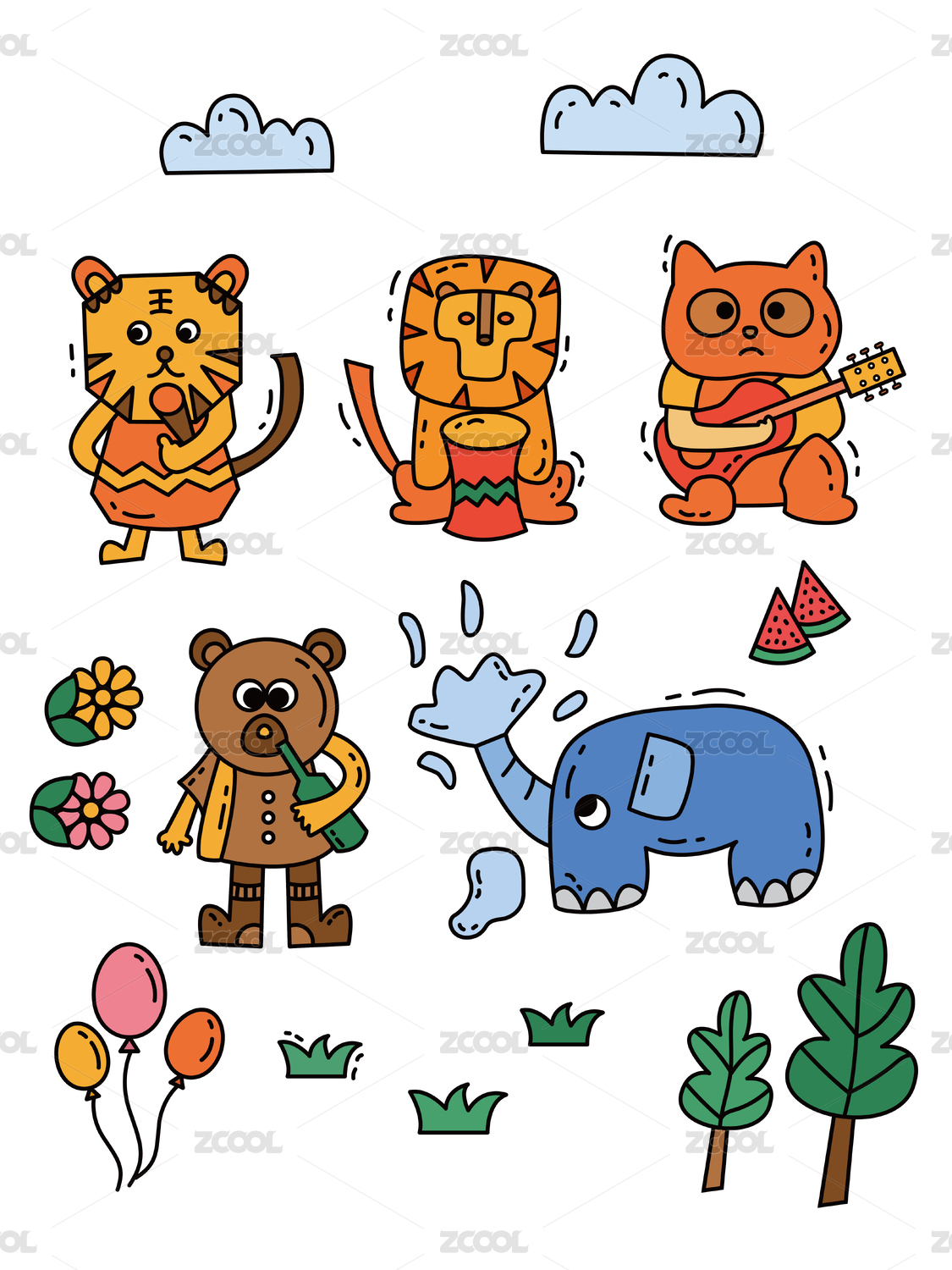 DOODLE風(fēng)動(dòng)物音樂(lè)節(jié)創(chuàng)意插畫繪制
