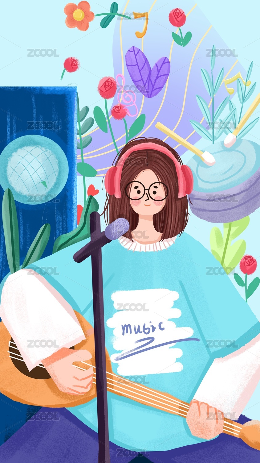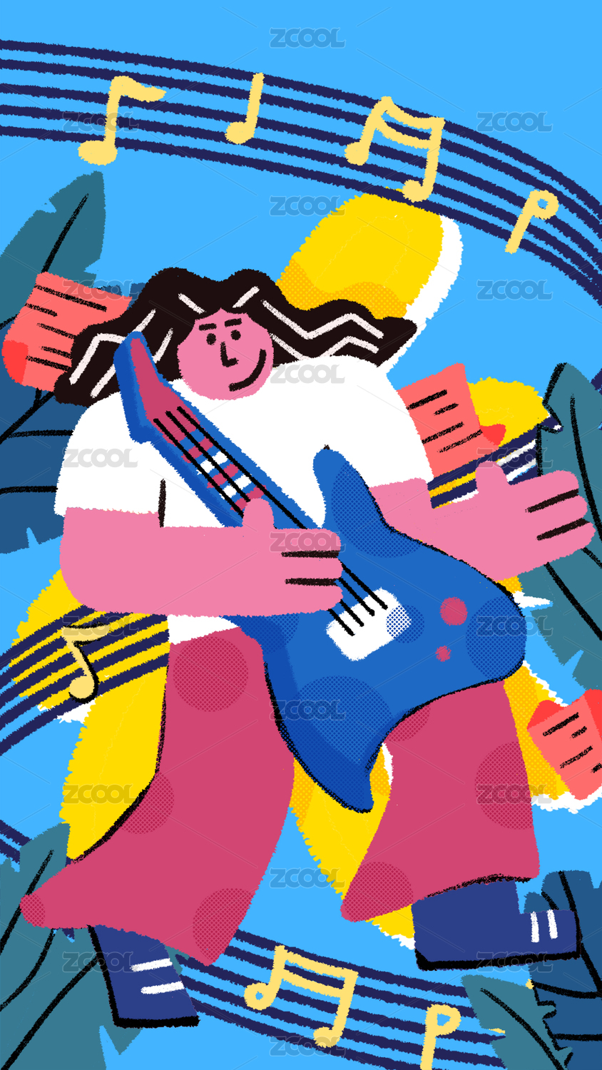 扁平風(fēng)肌理手繪插畫音樂(lè)節(jié)