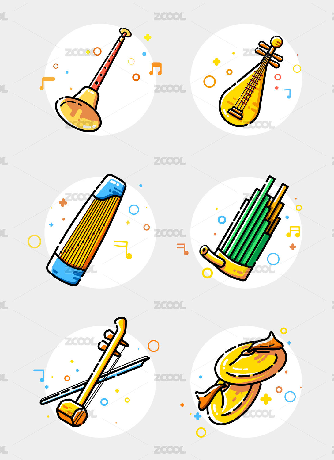 中國(guó)傳統(tǒng)樂(lè)器扁平可愛(ài)圖標(biāo)