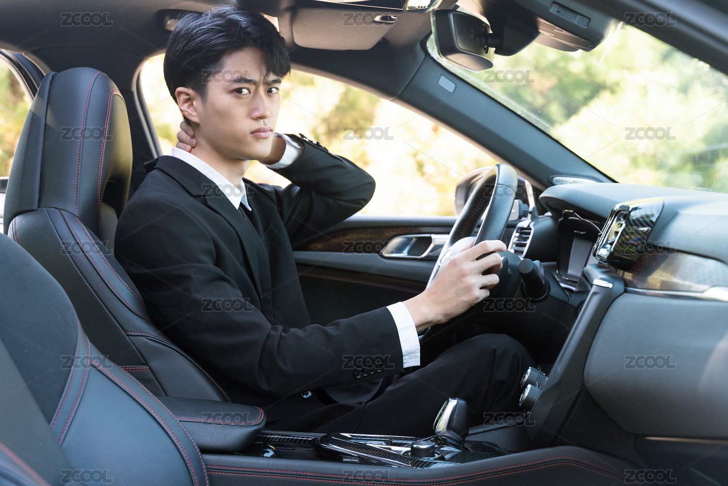 調(diào)節(jié)汽車內(nèi)飾的白襯衣男性駕駛員