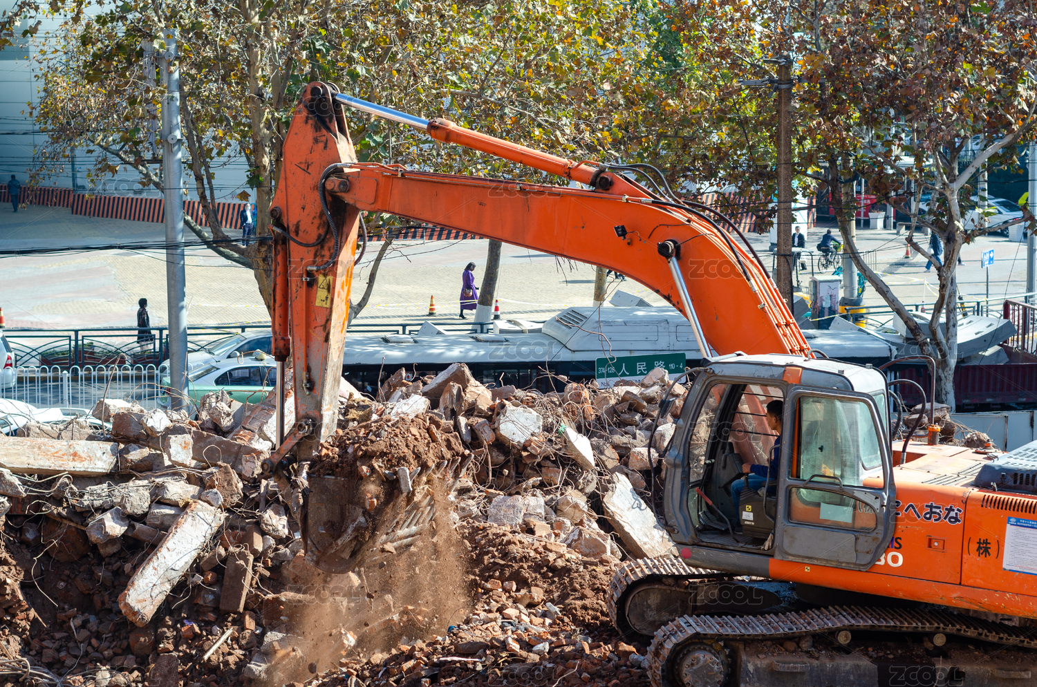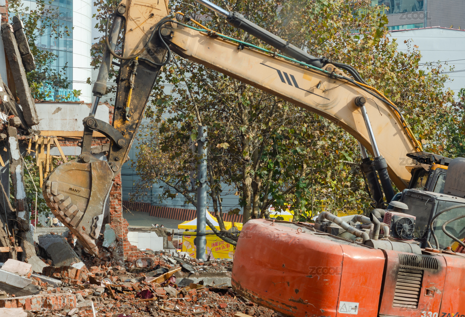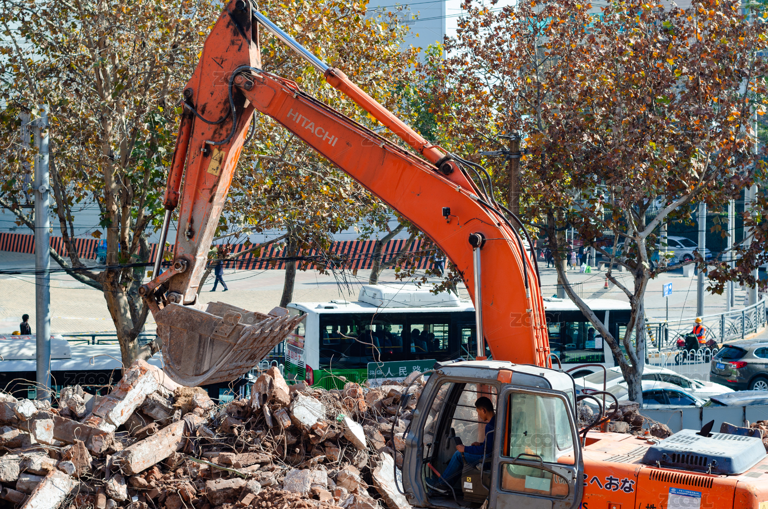 挖掘機駕駛員正在對一棟舊樓進(jìn)行