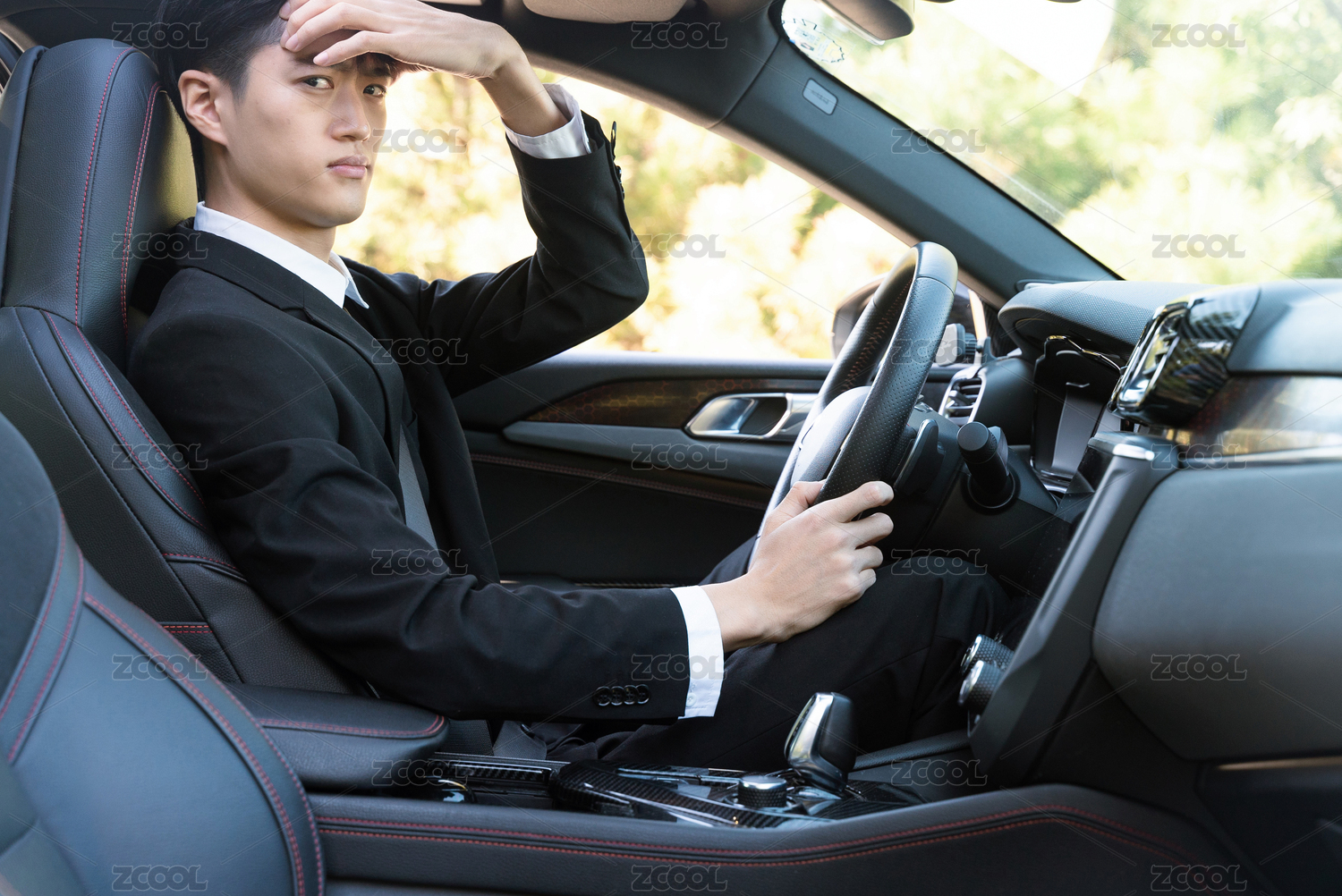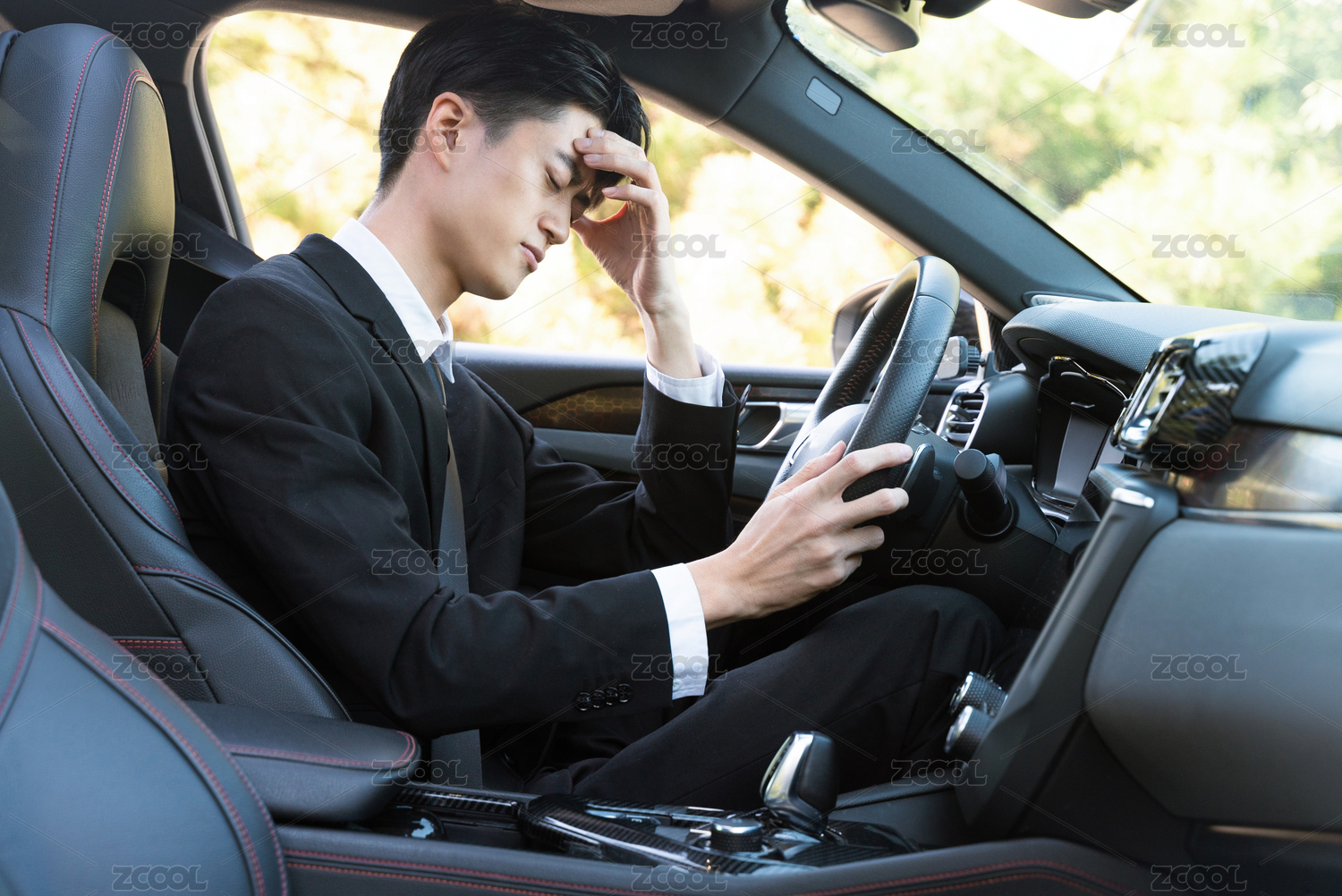 疲累的豪華專業(yè)司機,手按摩頸椎