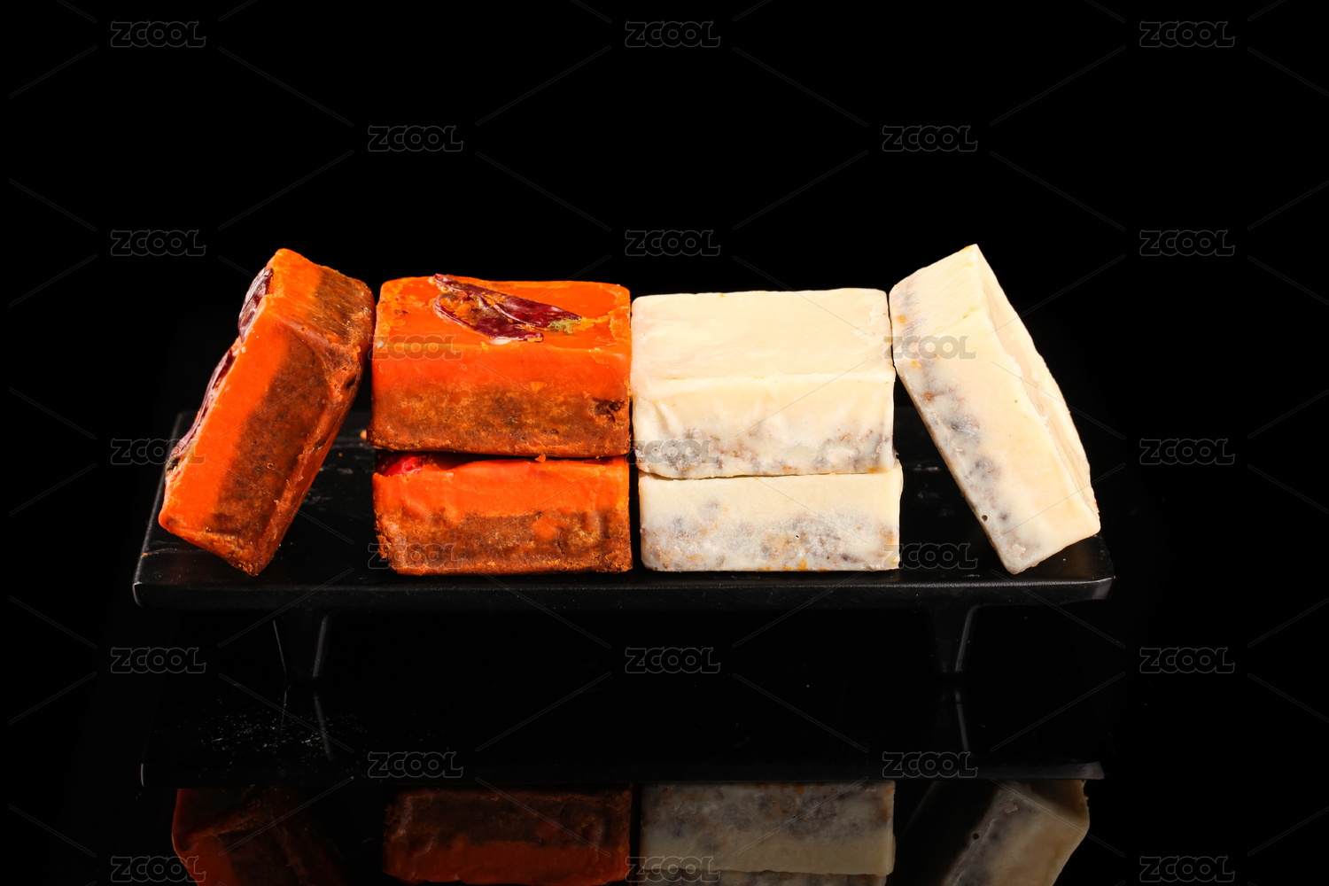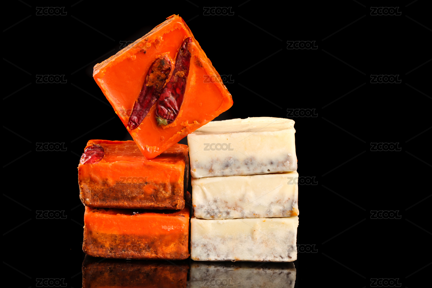 黑底上放著兩小塊菌湯火鍋底料