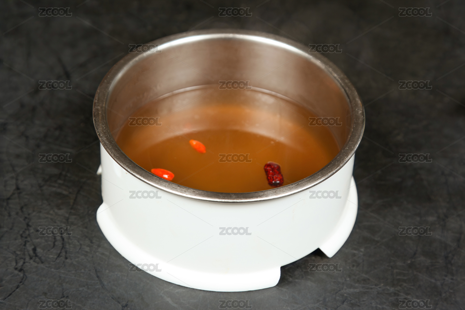 深色背景上的菌湯火鍋湯底