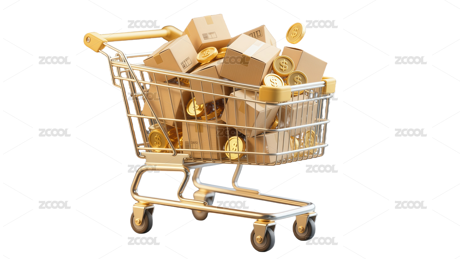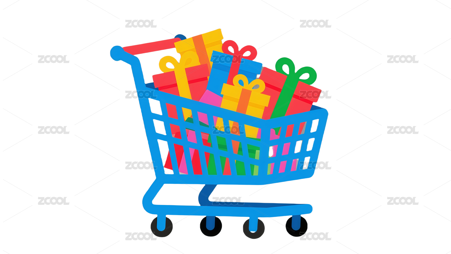 雙十一題材的超市購物車和禮物盒