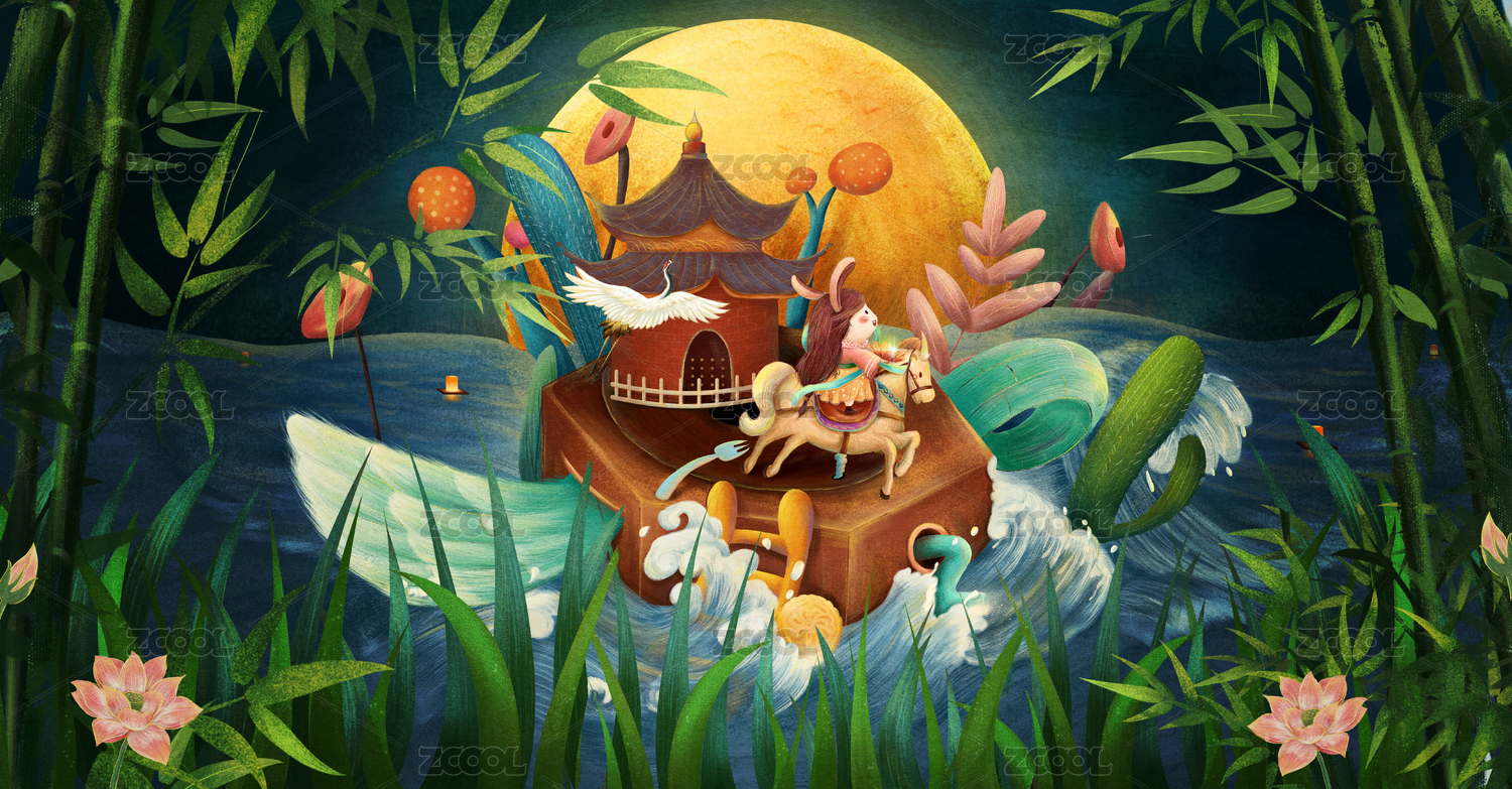 國(guó)風(fēng)中秋玉兔月餅放花燈團(tuán)圓夜