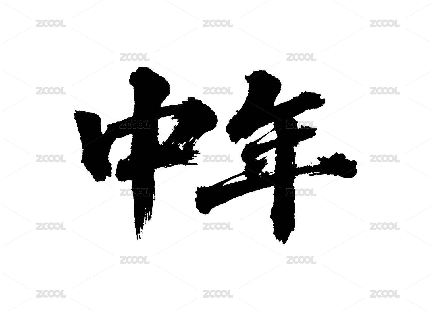 中年矢量書法手寫毛筆字