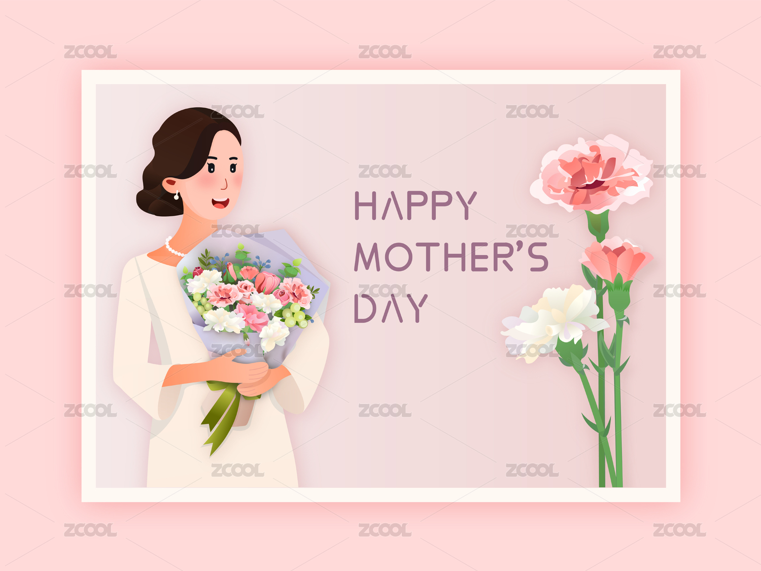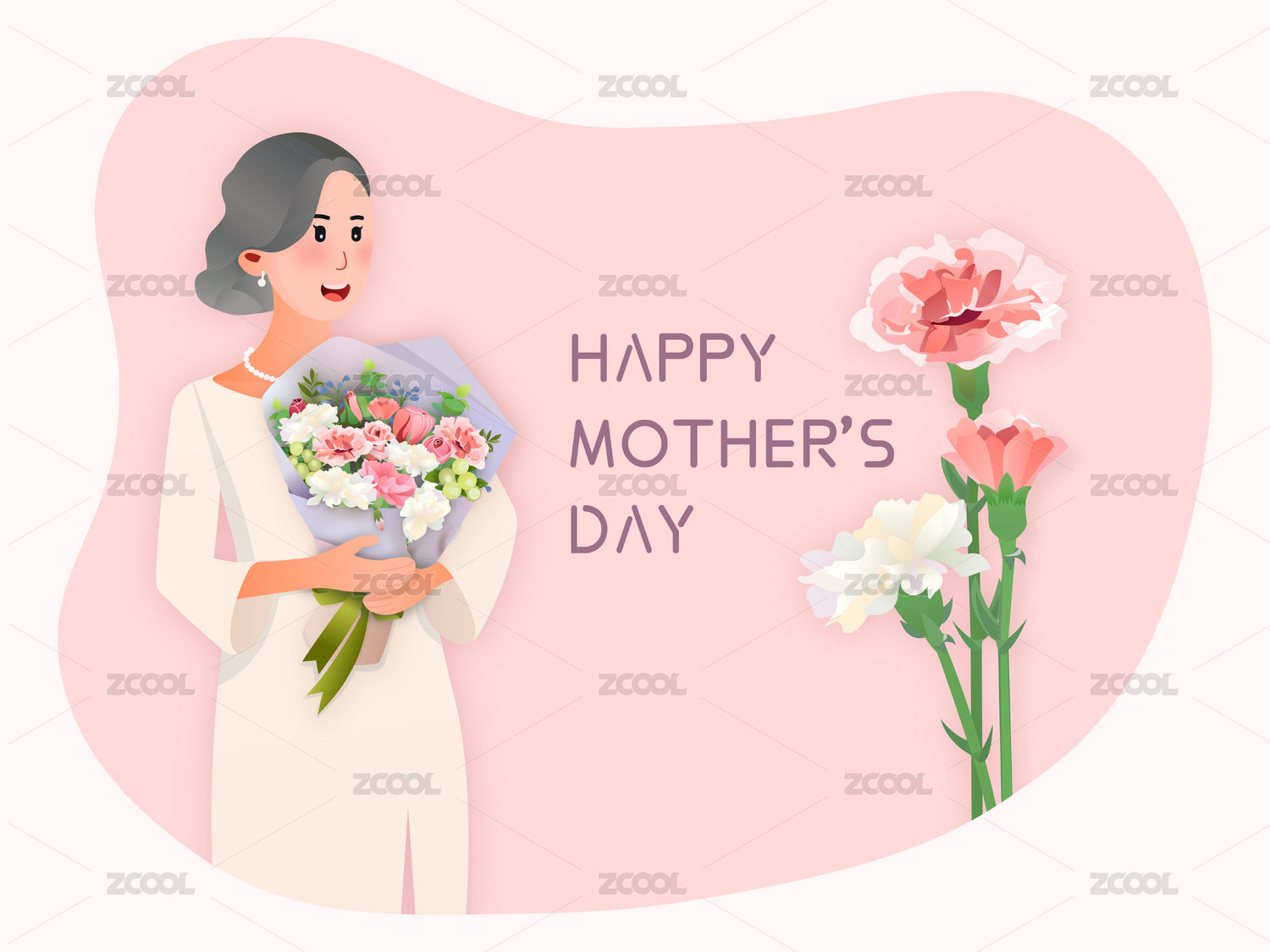 環(huán)抱康乃馨花束的中年婦女插畫矢量素材