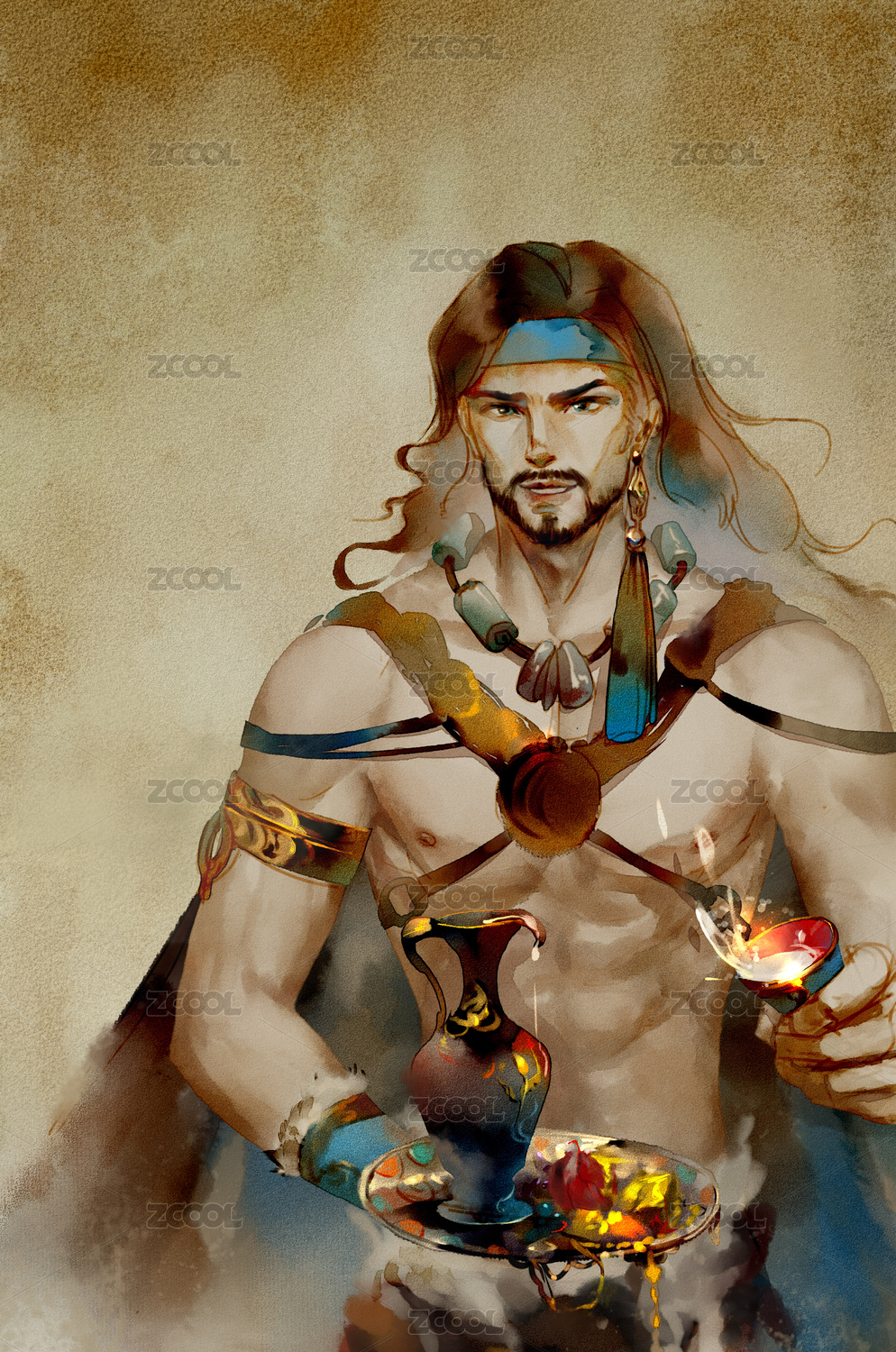 古風(fēng)水彩異域強(qiáng)壯中年男子