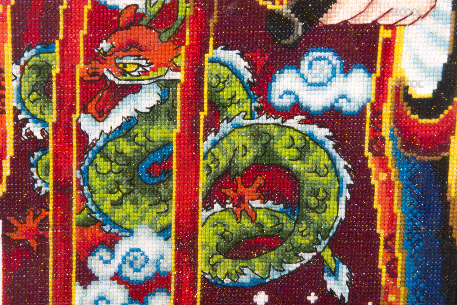 傳統(tǒng)十字繡龍圖案特寫