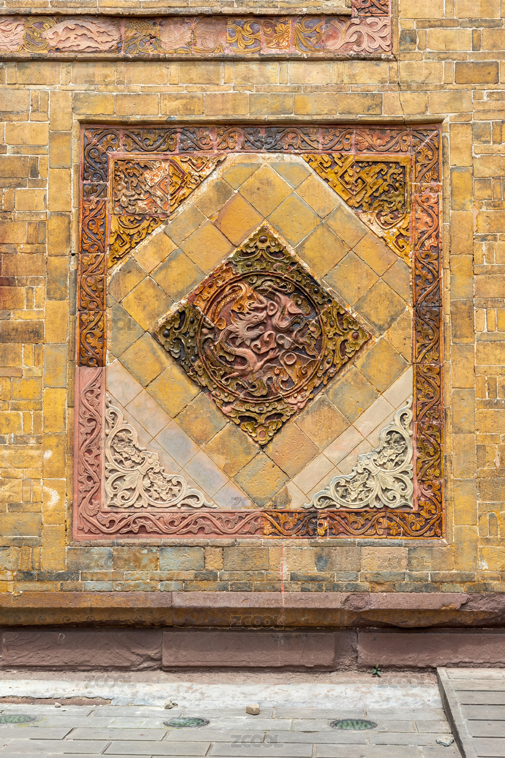 中國傳統(tǒng)建筑墻壁上雕刻的龍圖案
