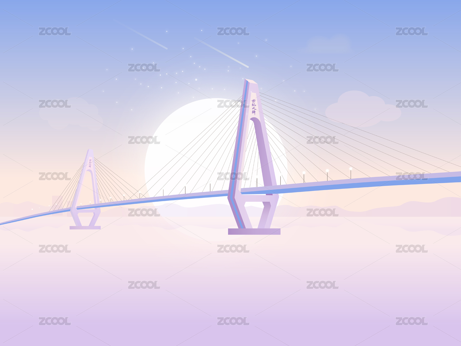 一座橫跨海面氣勢磅礴??谑兰o大橋矢量插畫