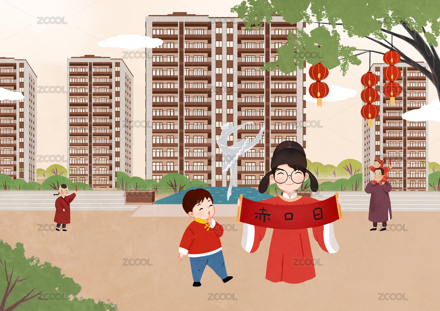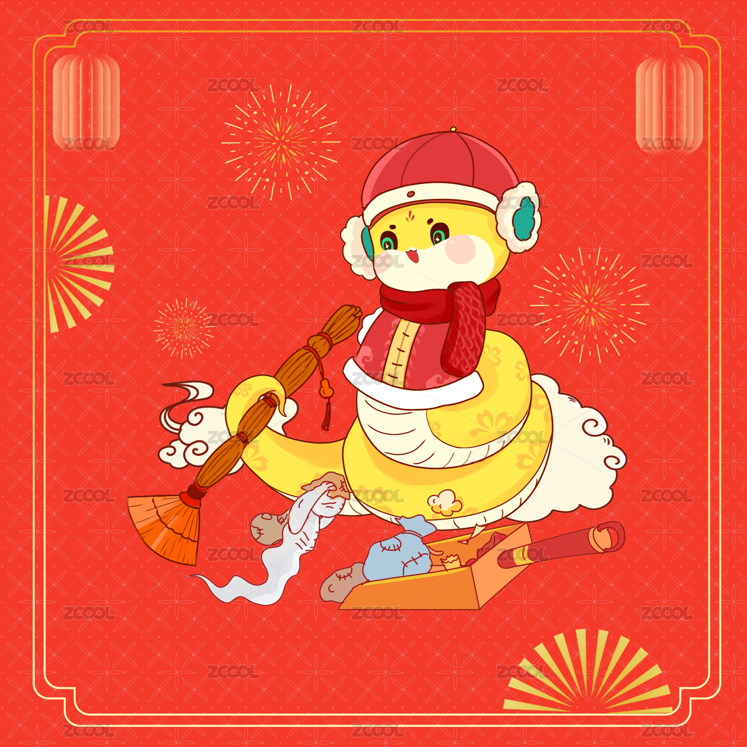 蛇年新春春節(jié)年俗大年初三貼赤口系列插畫