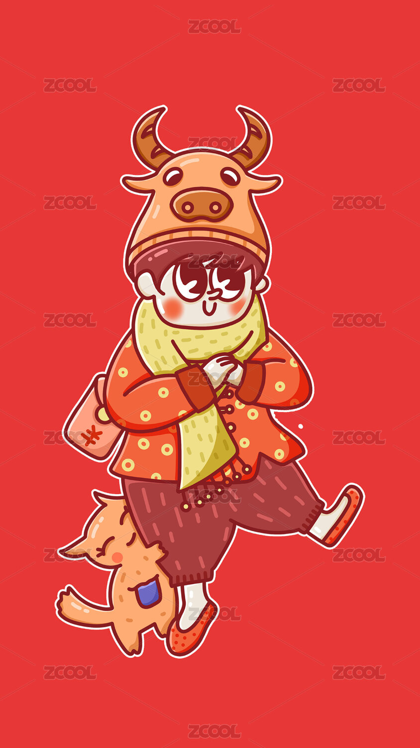 牛年新年主題插畫卡通